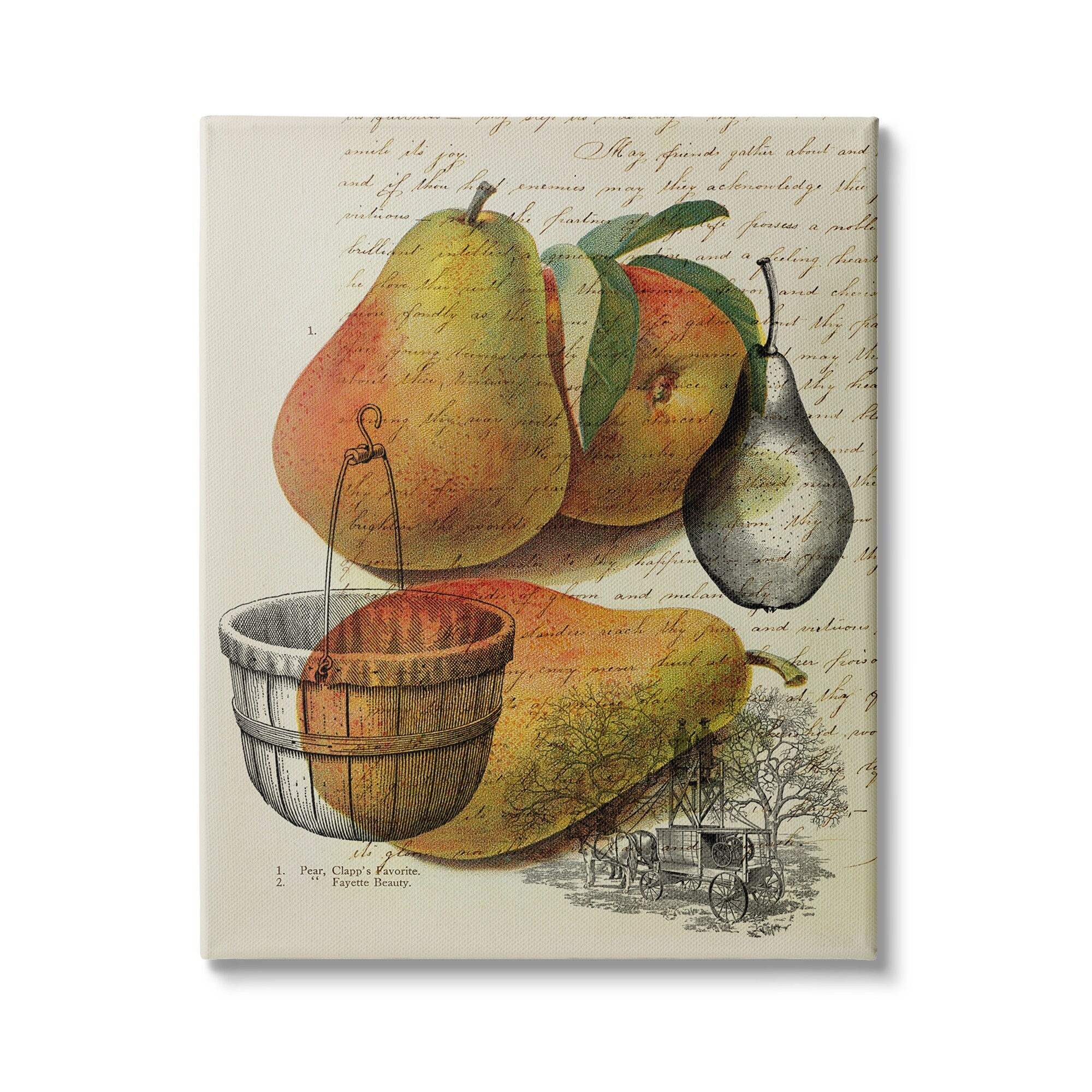 Stupell Industries Pear Fruit Harvest Illustration Vintage Text Passage Canvas Wall Art - Yellow