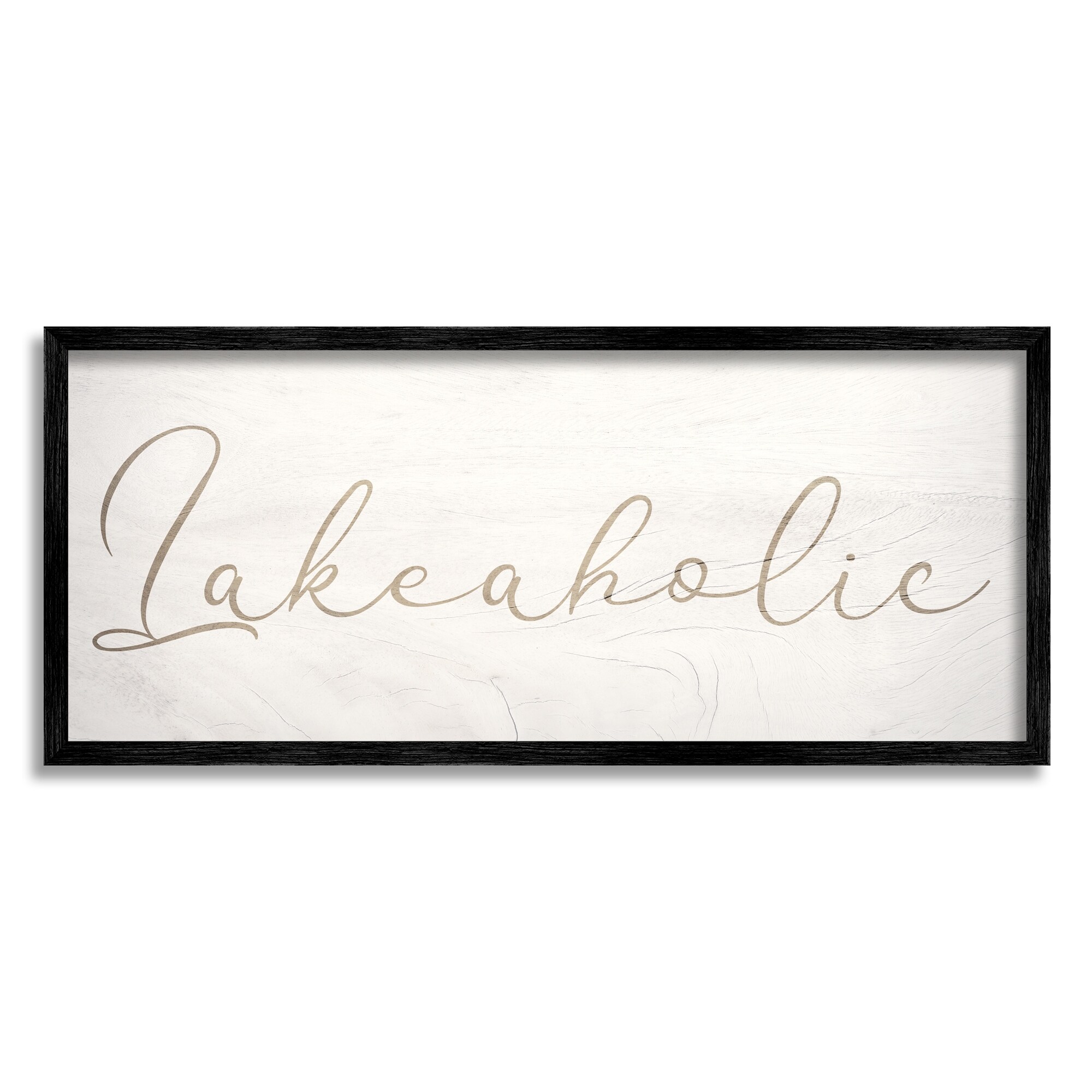 Stupell Lakeaholic Shabby Chic Calligraphy Text Rustic Background Framed Wall Art - Off-White