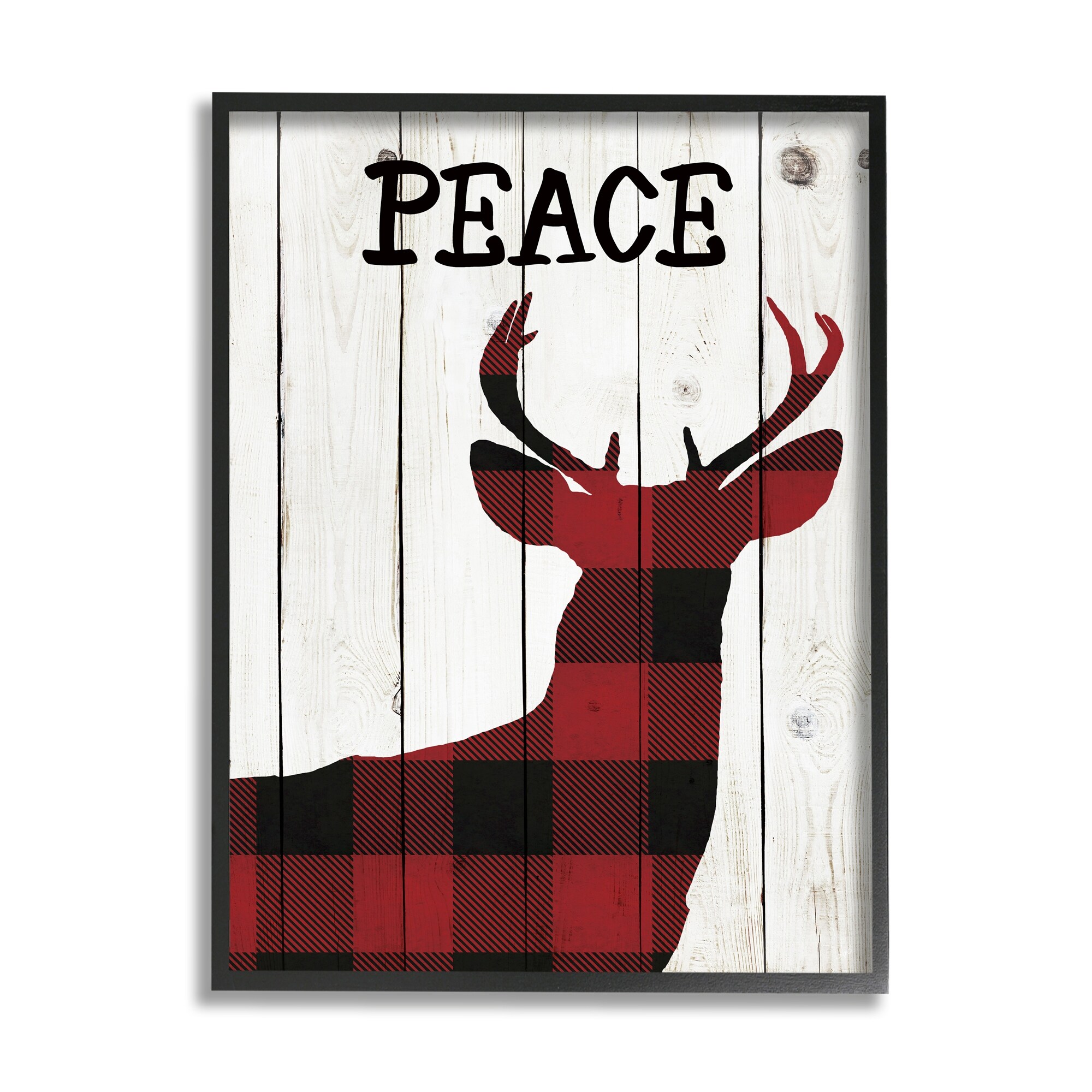 Stupell Industries Checker Plaid Reindeer Rustic Peace Text Framed Wall Art