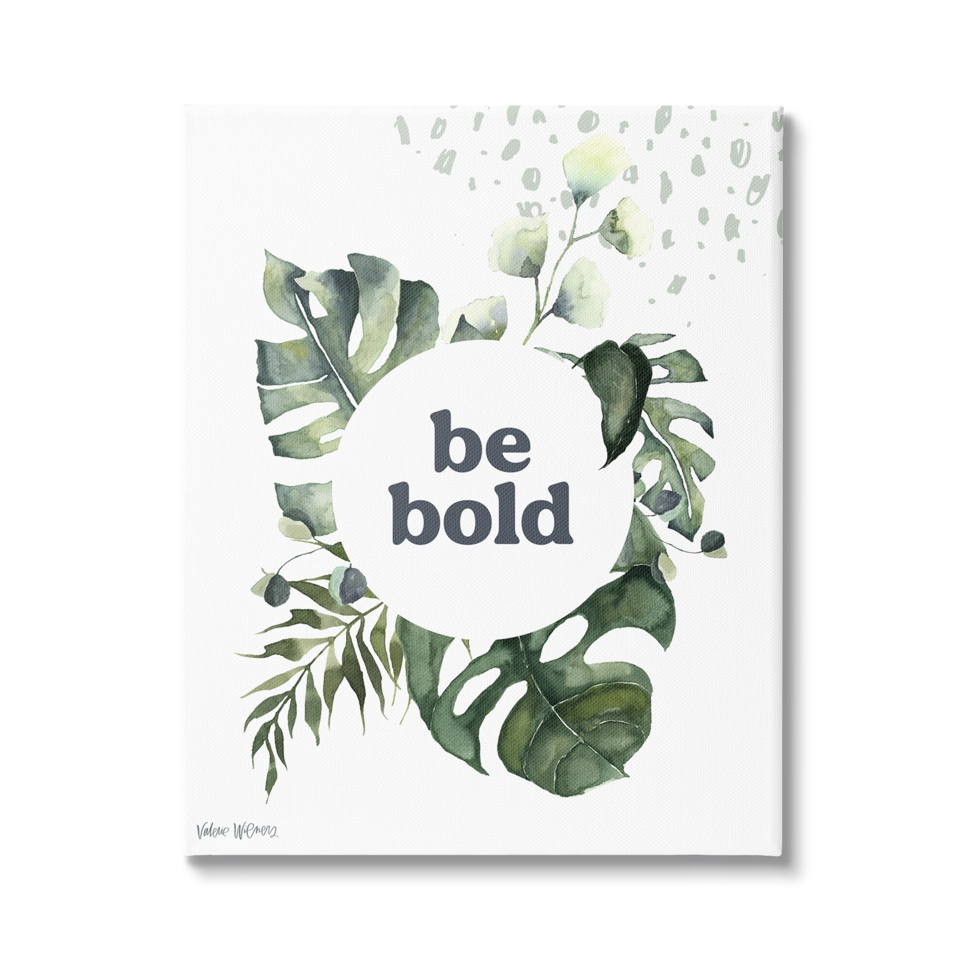 Stupell Be Bold Phrase Text Botanical Leaf Border Motif Canvas Wall Art - Green