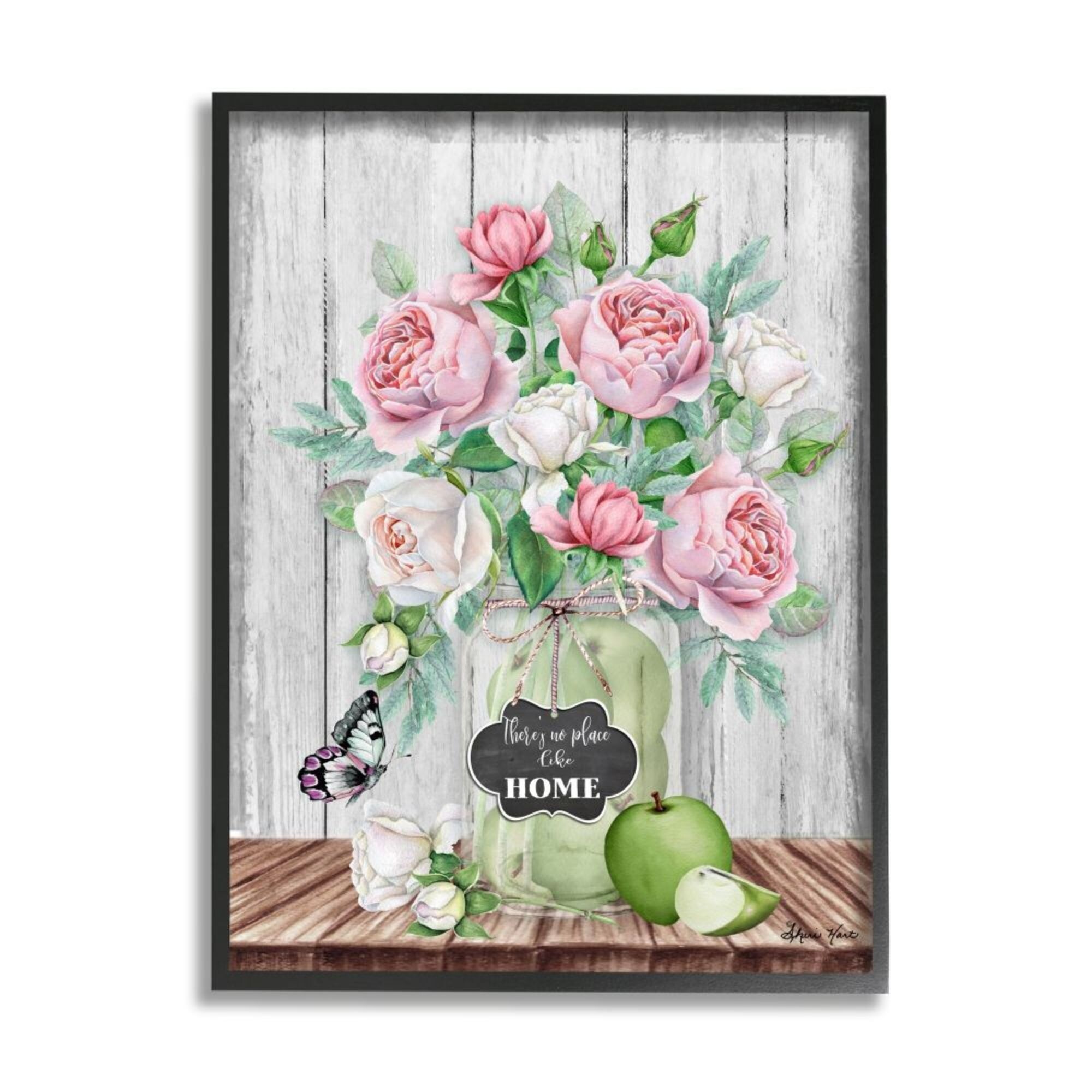 Stupell Industries No Place Like Home Text Pink Roses Fruit Jar Framed Wall Art