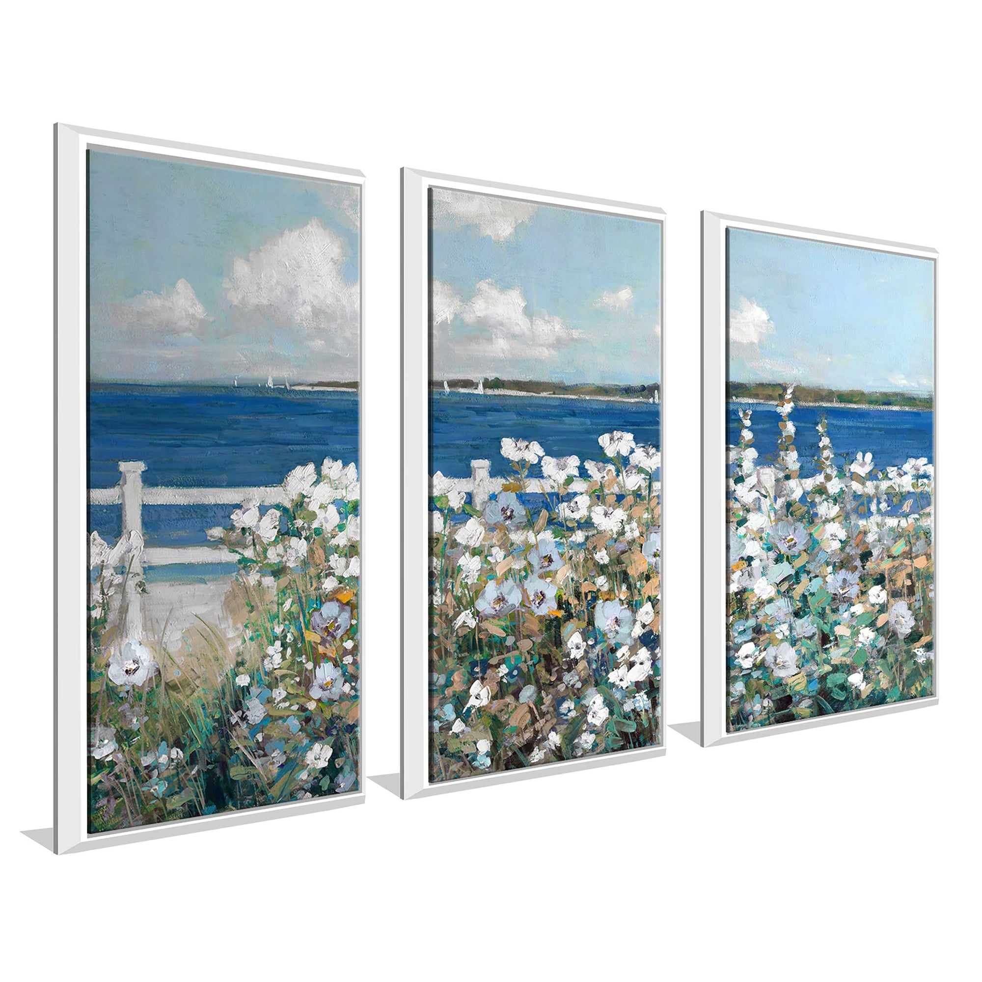 "Bayside Garden" by Sally Swatland Print on Floating Canvas Set of 3