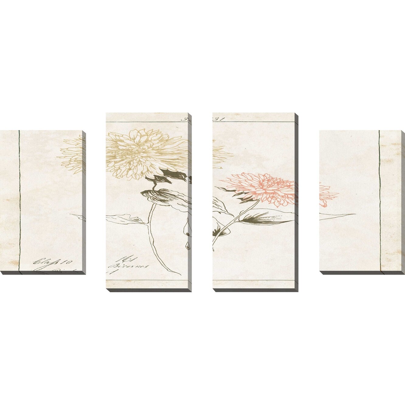 "Flowers on White I with Words" Print on Canvas Set of 4