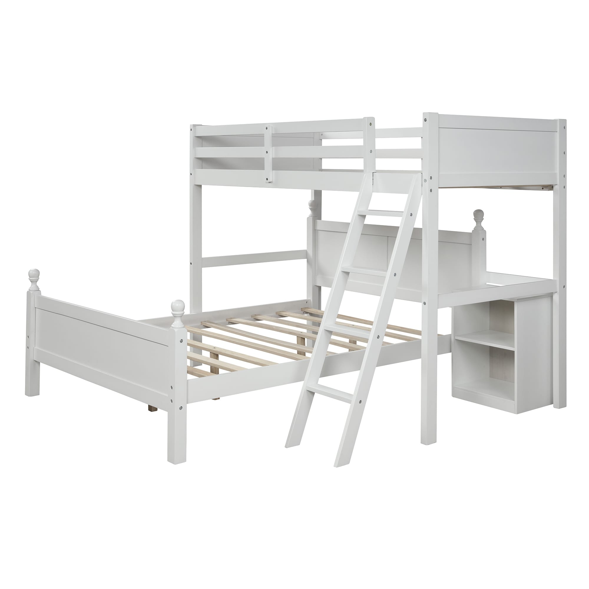 Twin over Twin Bunk Bed with Attached Cabinet and Shelves Storage