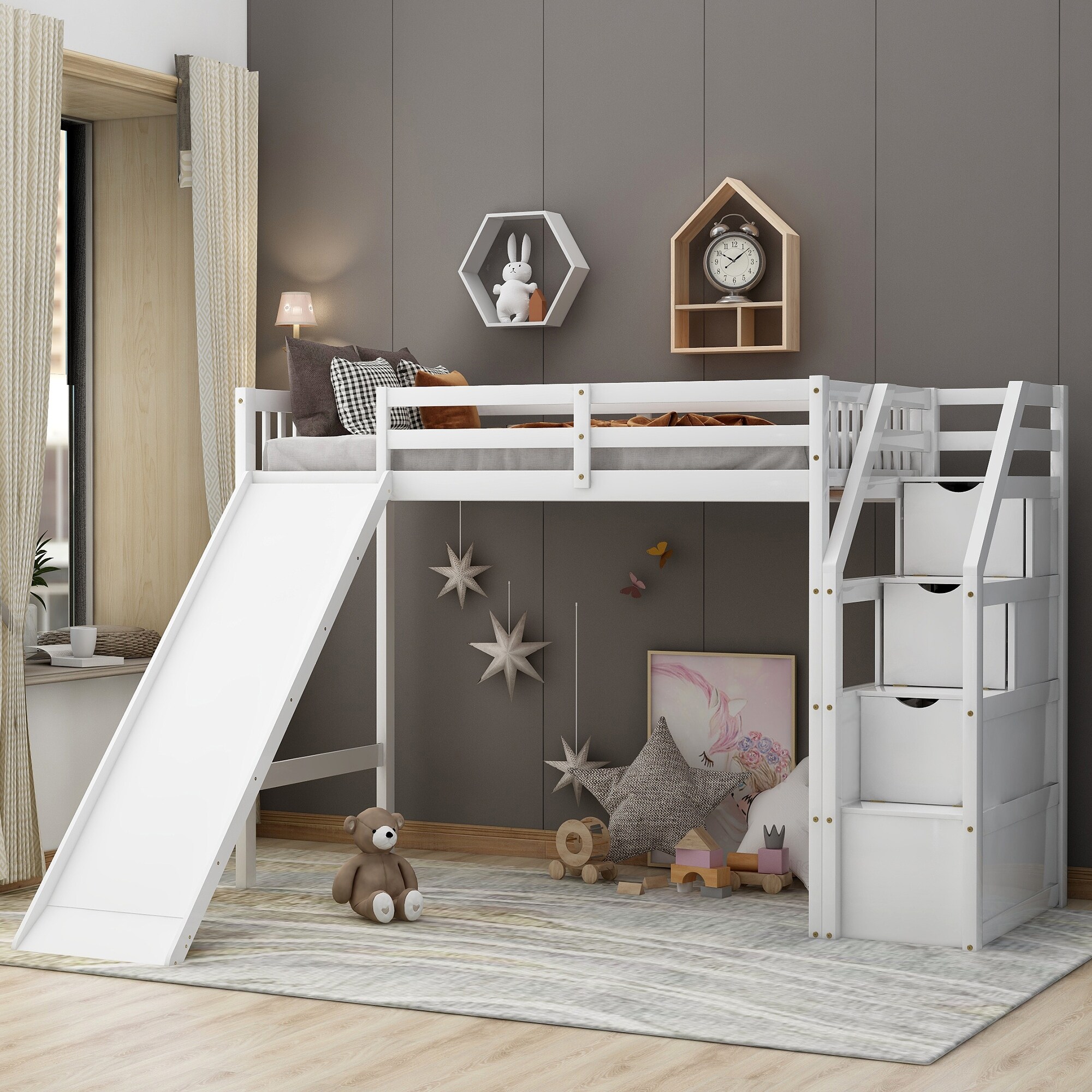 Twin Size Loft Bed with Shelves and Drawers, Space Maximization