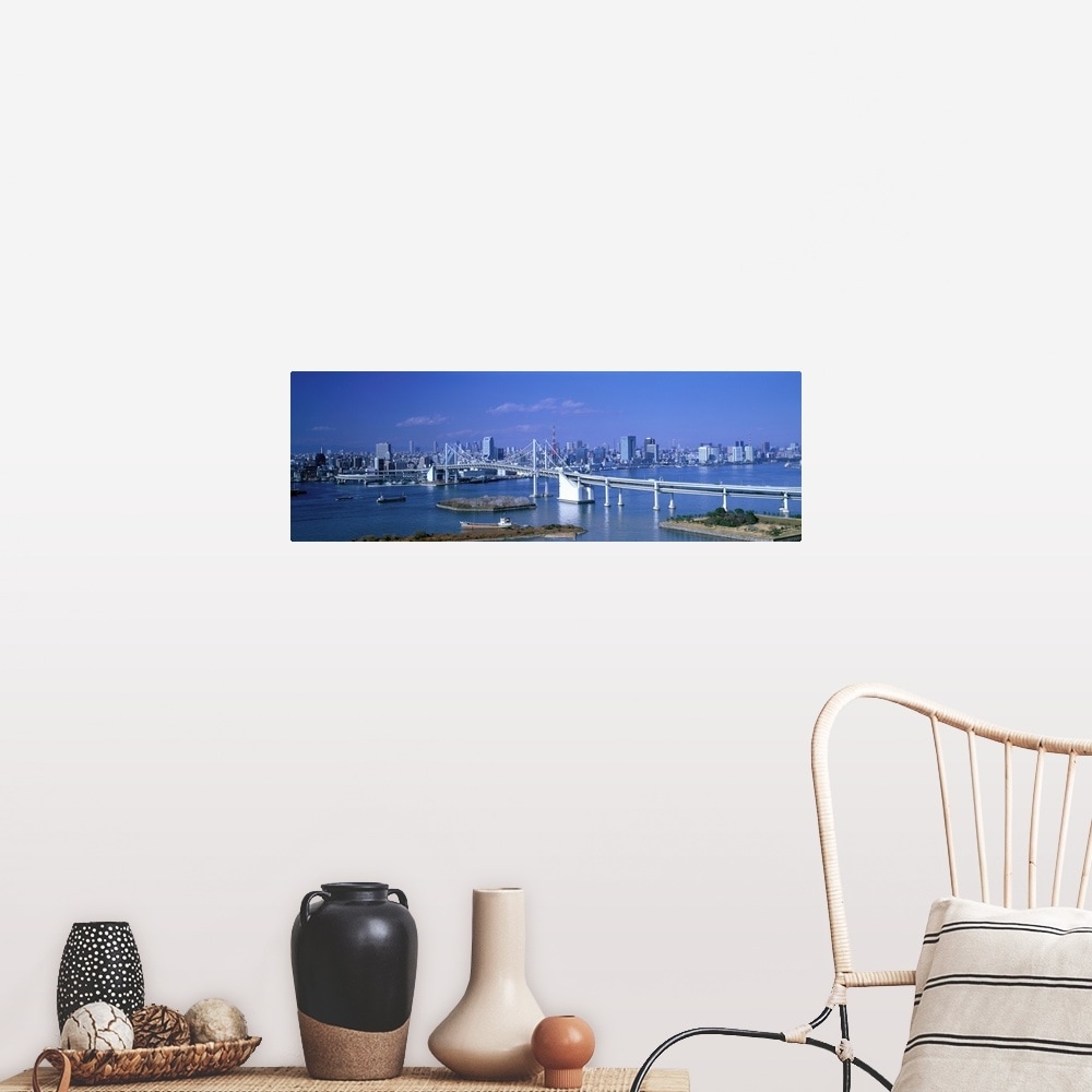 Tokyo Gate Bridge Panorama - Landscape Artwork Print on Canvas - Blue