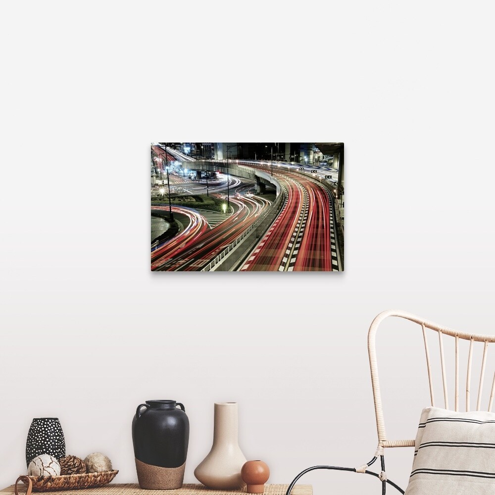 "Light trails on street at night, Tokyo, Japan." Canvas Wall Art