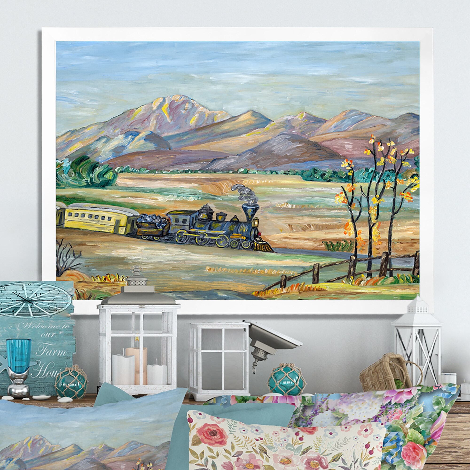 Designart "Train Moving Through the Countryside" Traditional Framed Wall Art
