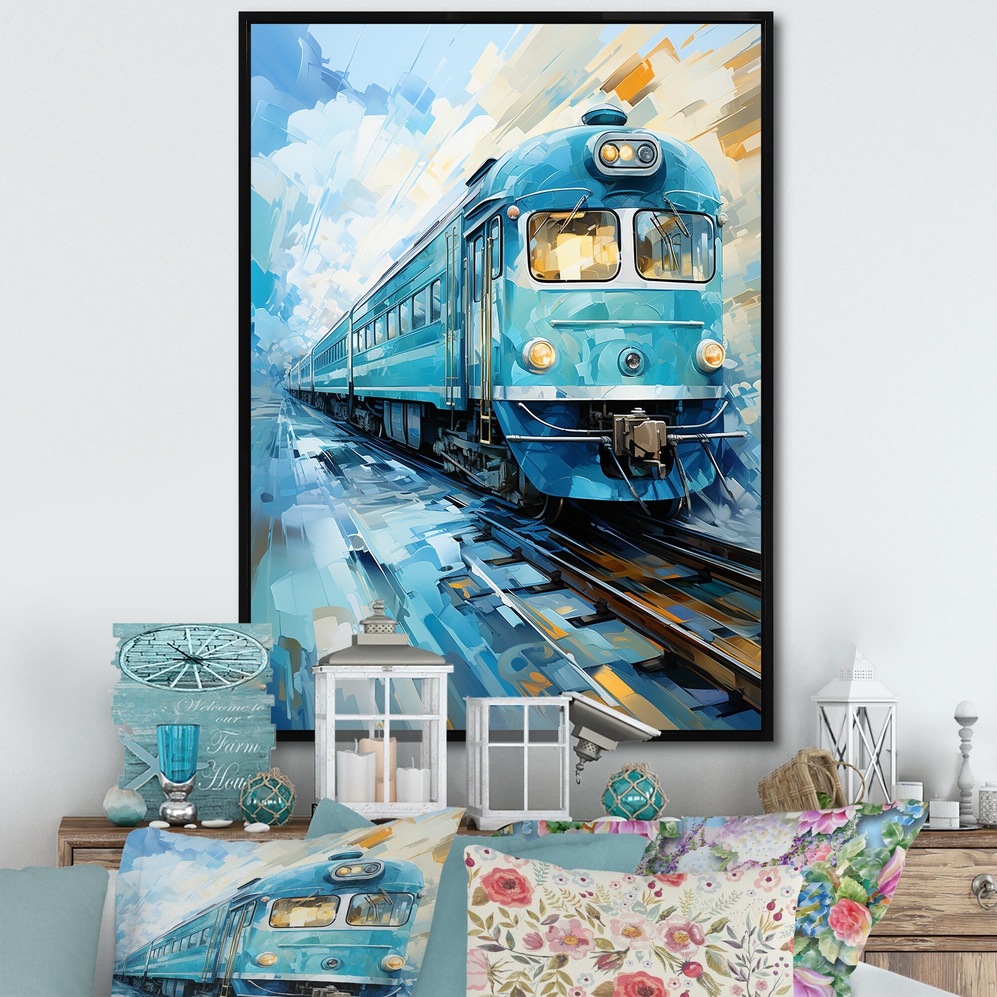 Designart "Teal Train Geometric Momentum II" Train Framed Canvas Art Print