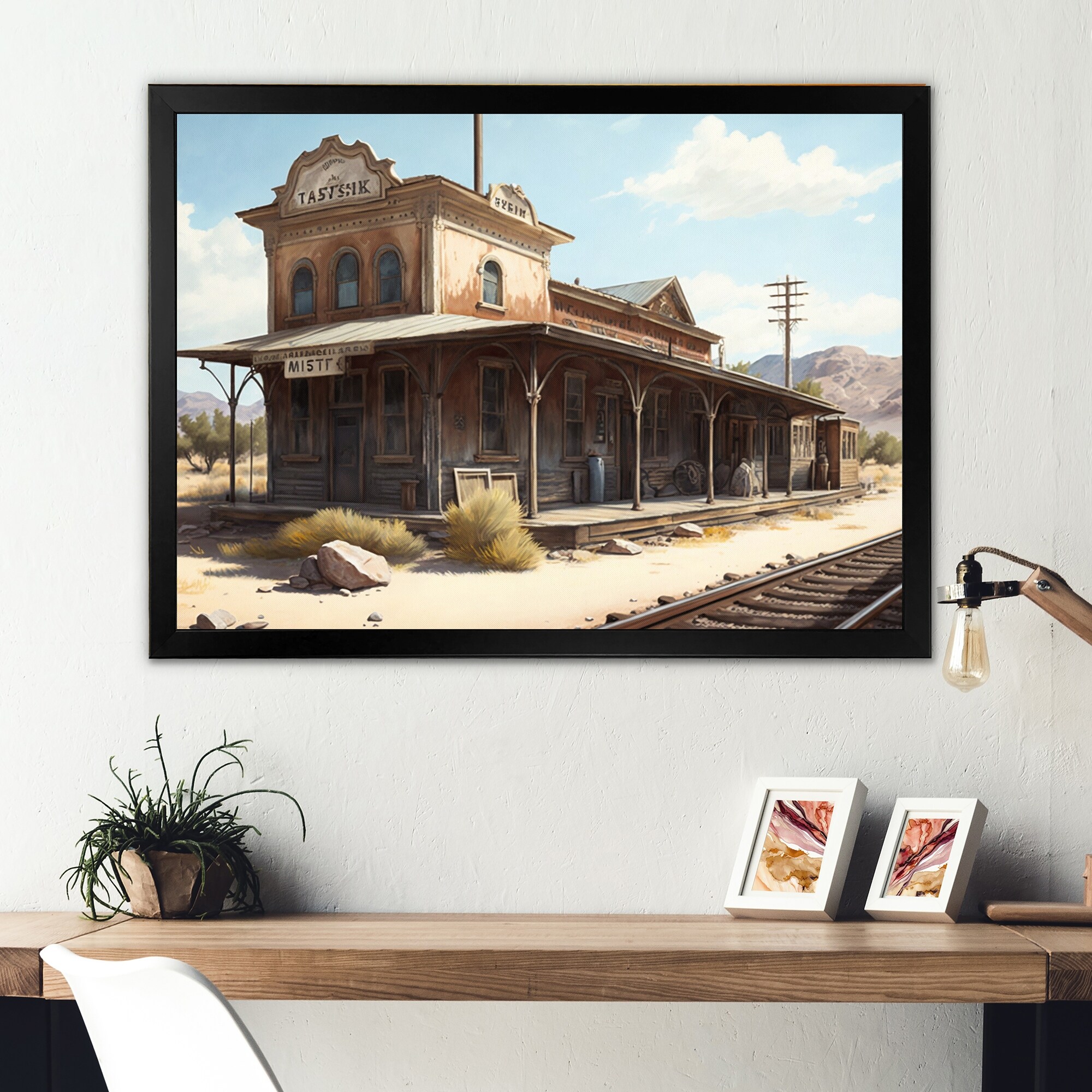 Designart "Wild West Train Station I" Cottage Landscape Framed Art Print