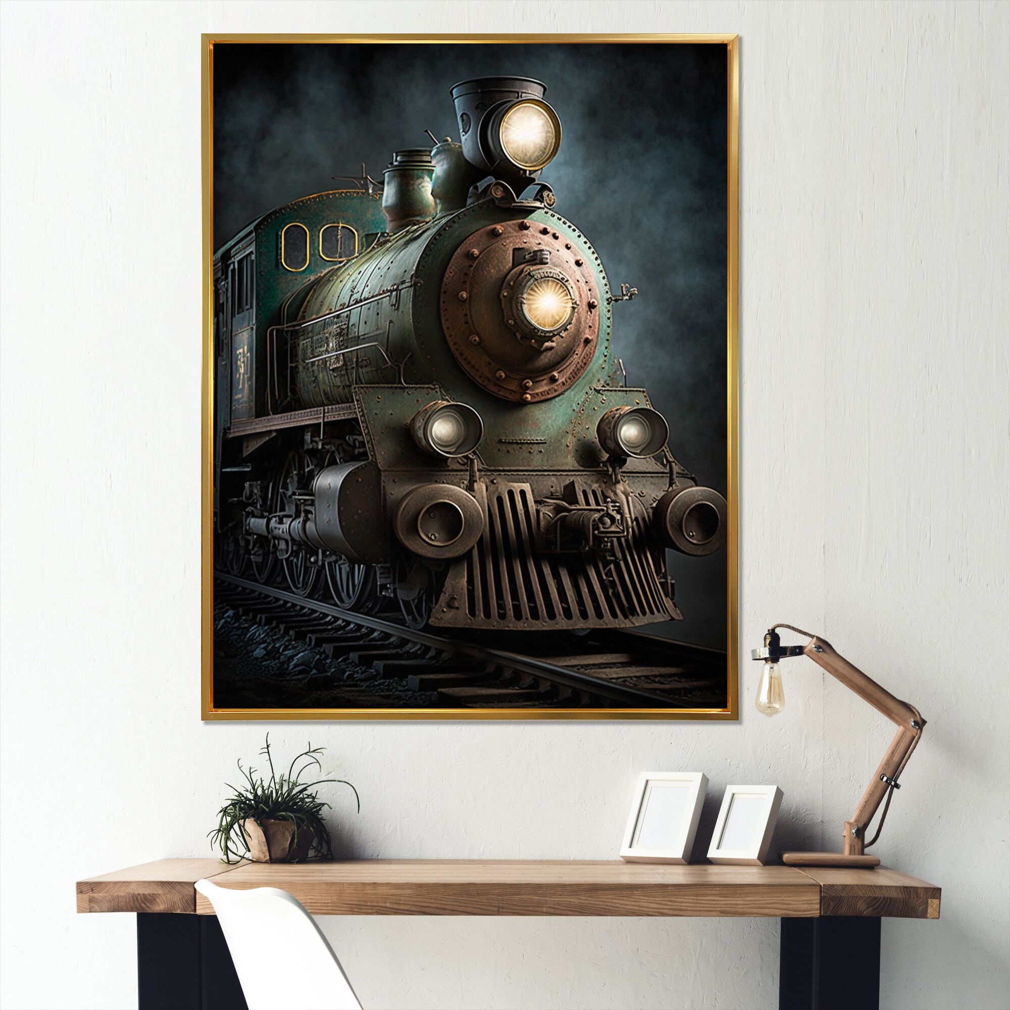 Designart "Train On the Track I" Transportation Train Framed Canvas Wall Art