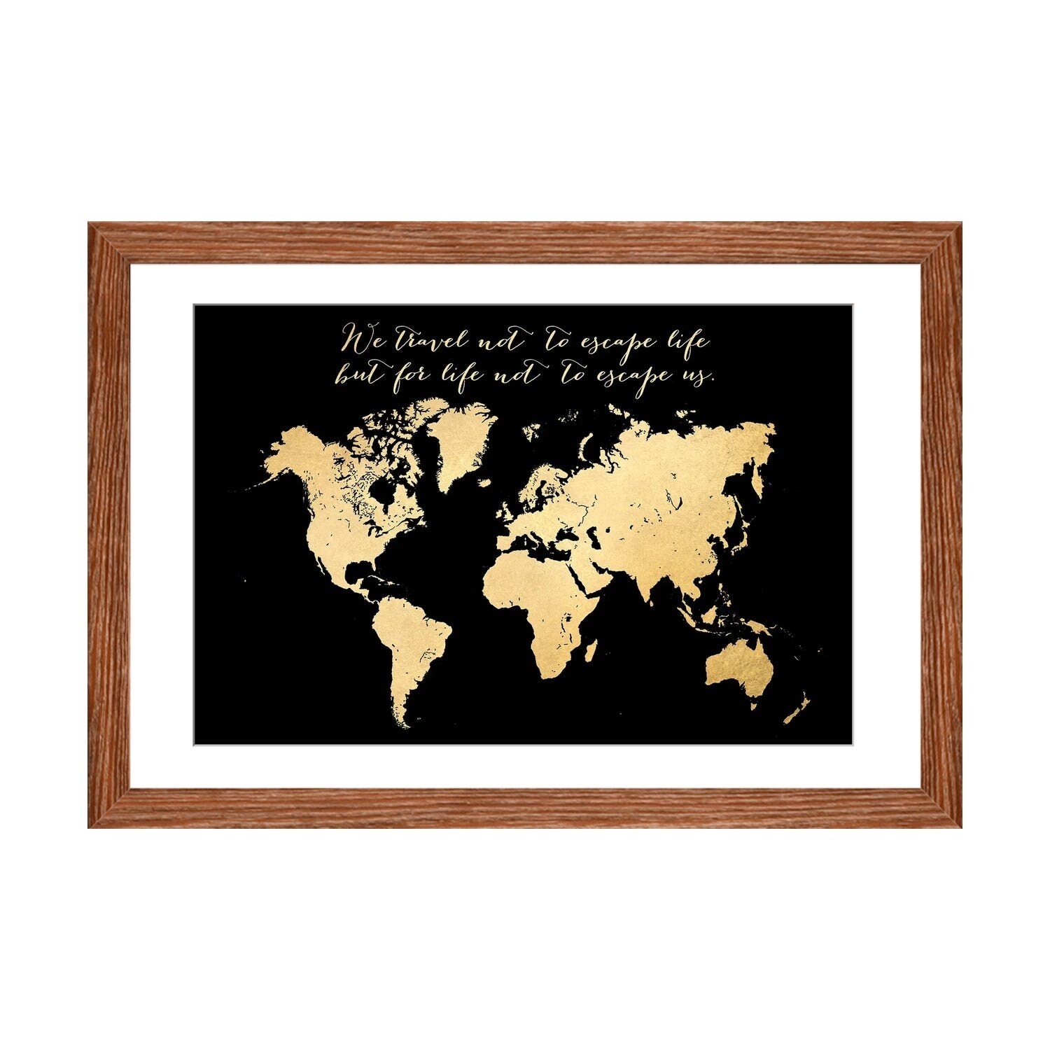 iCanvas "We Travel Not to Escape Life Gold World Map" by blursbyai