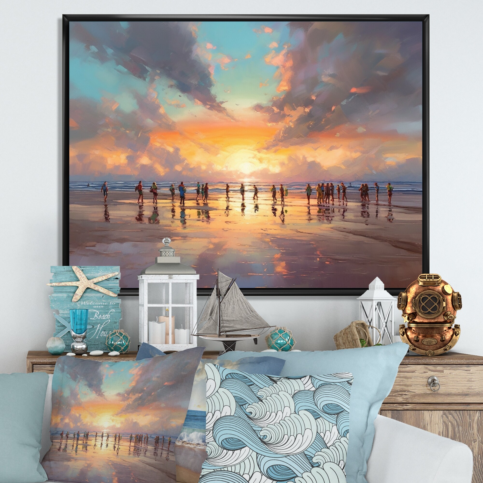 Designart "Travellers Visiting Beach" Modern Landscape Beach Framed Canvas Prints