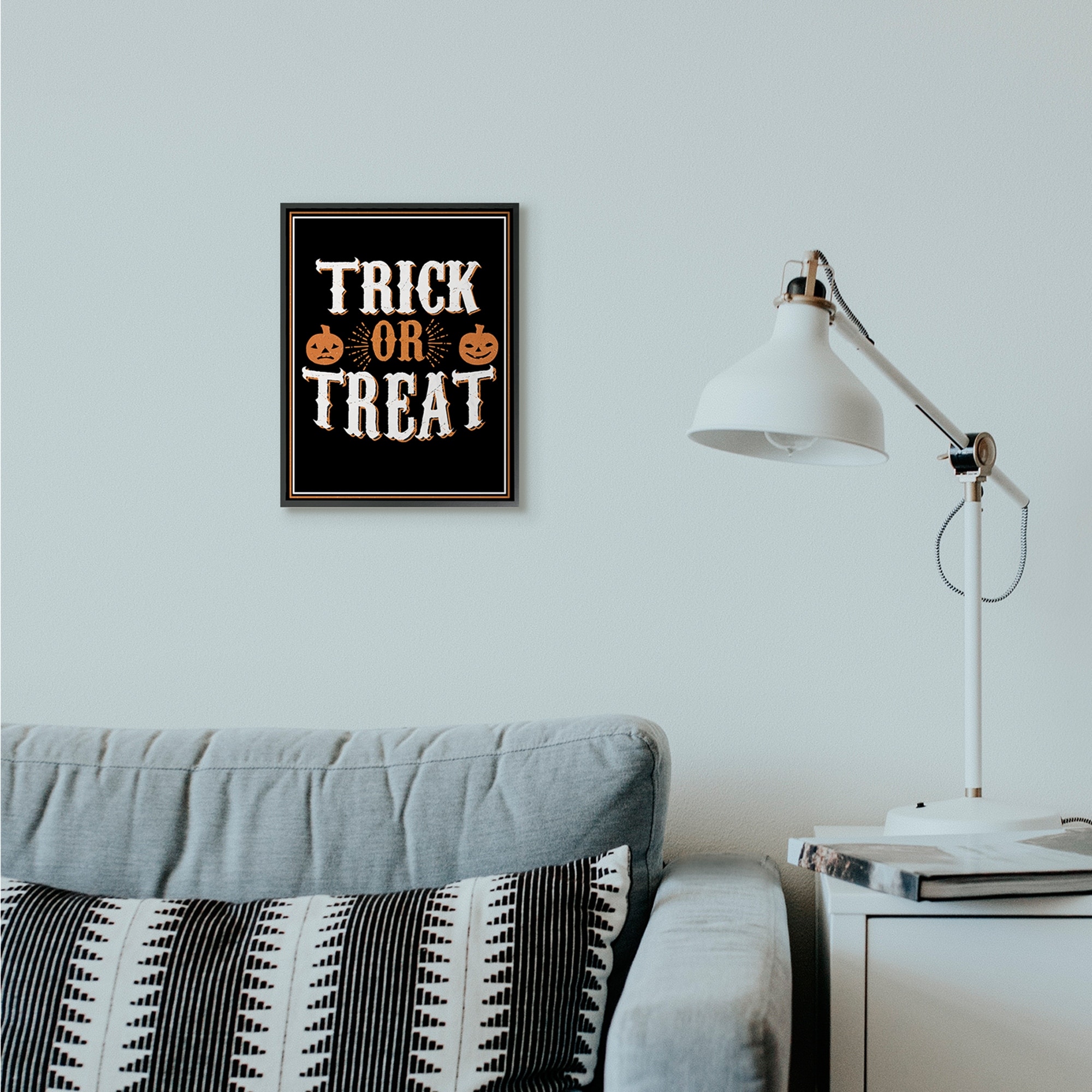 Stupell Industries Trick Or Treat Orange Black Holiday Word Design Framed Wall Art