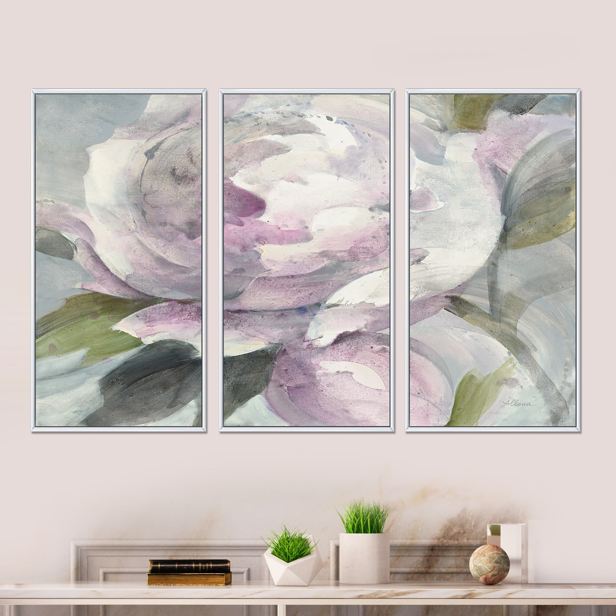 Designart "Twilight Peony" Shabby Chic Framed Wall Decor Set of 3 - 4 Colors of Frames