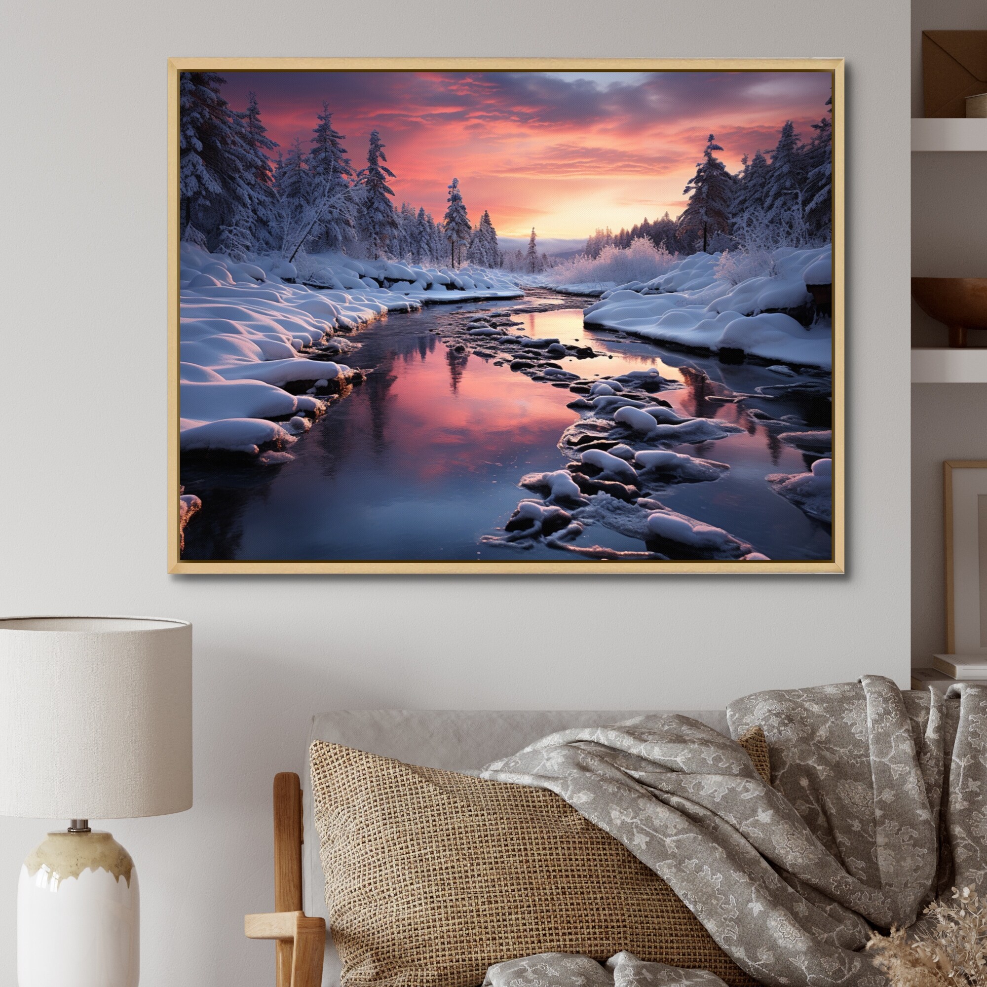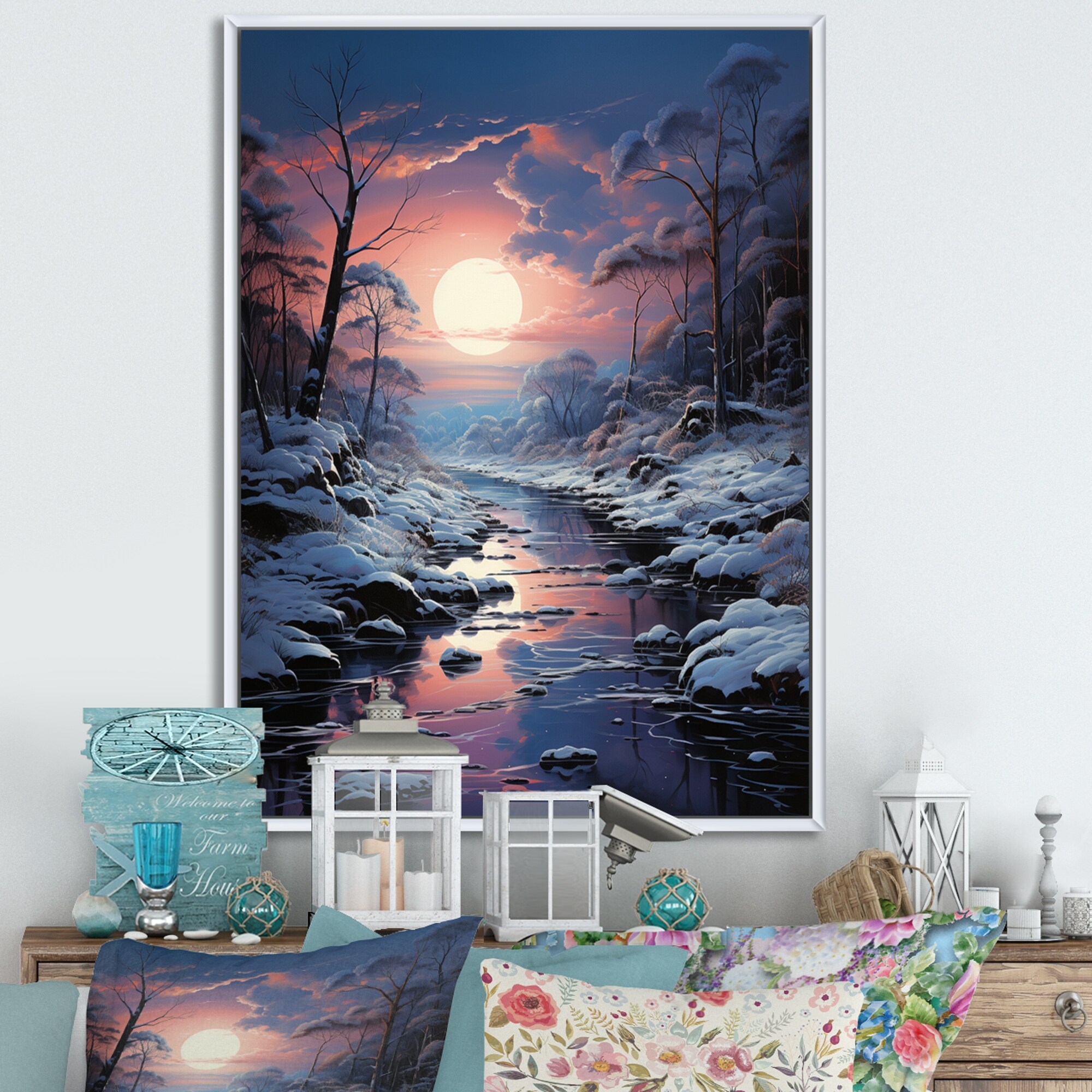 Designart "White Fushia Winter Twilight III" Winter Landscape Framed Canvas Art Print