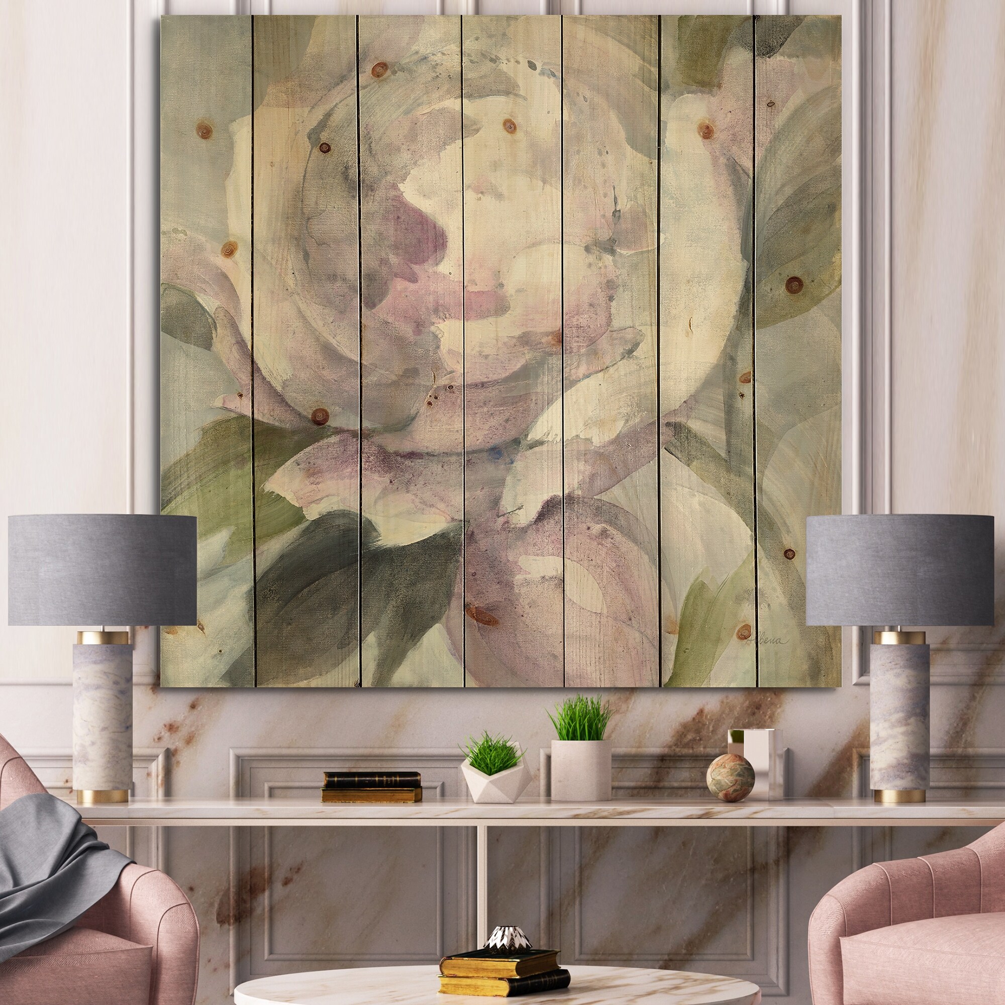 Designart 'Twilight Peony' Shabby Chic Print on Natural Pine Wood - Grey