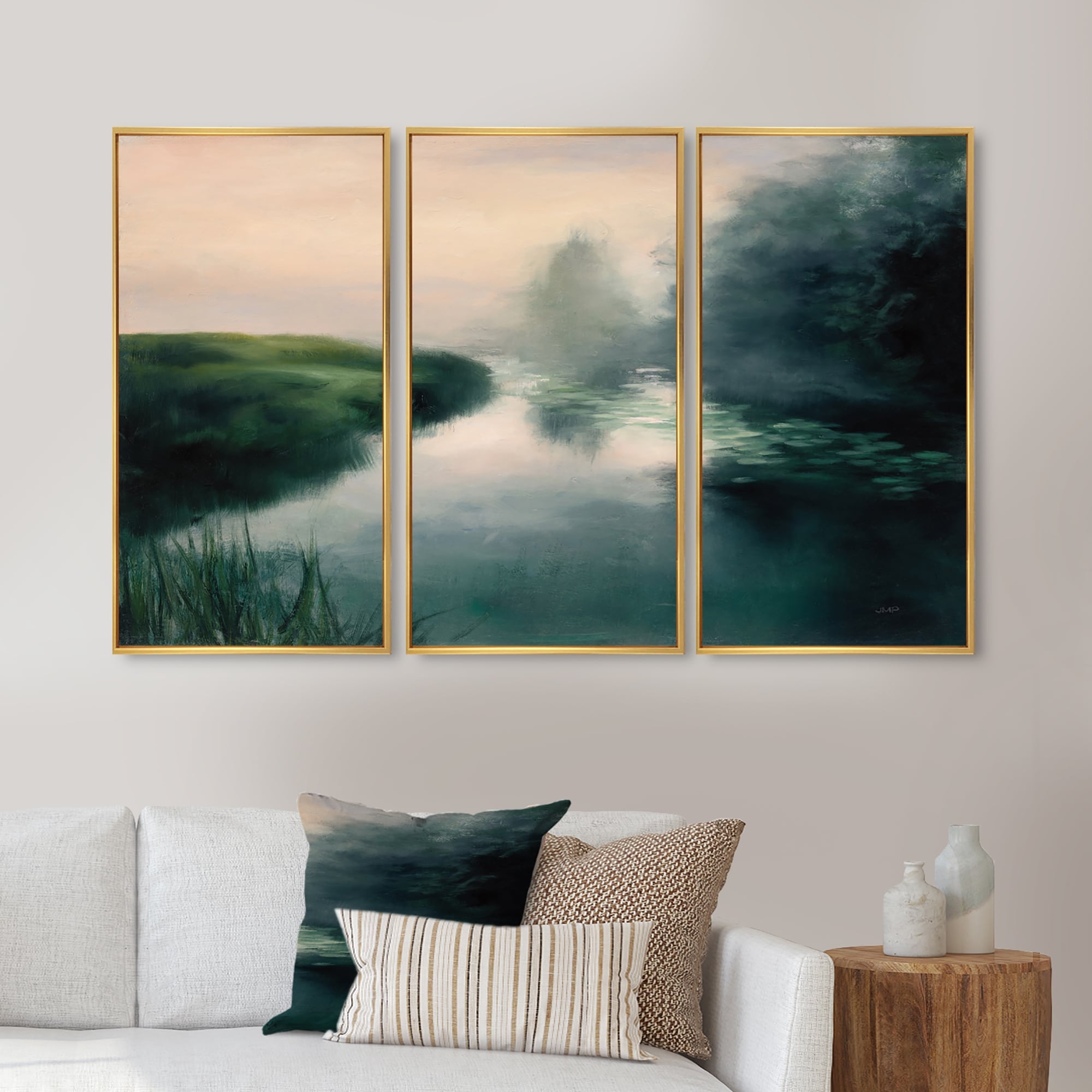 Designart "Twilight Fog Lakeshore" Traditional Framed Art Prints Set of 3 - 4 Colors of Frames
