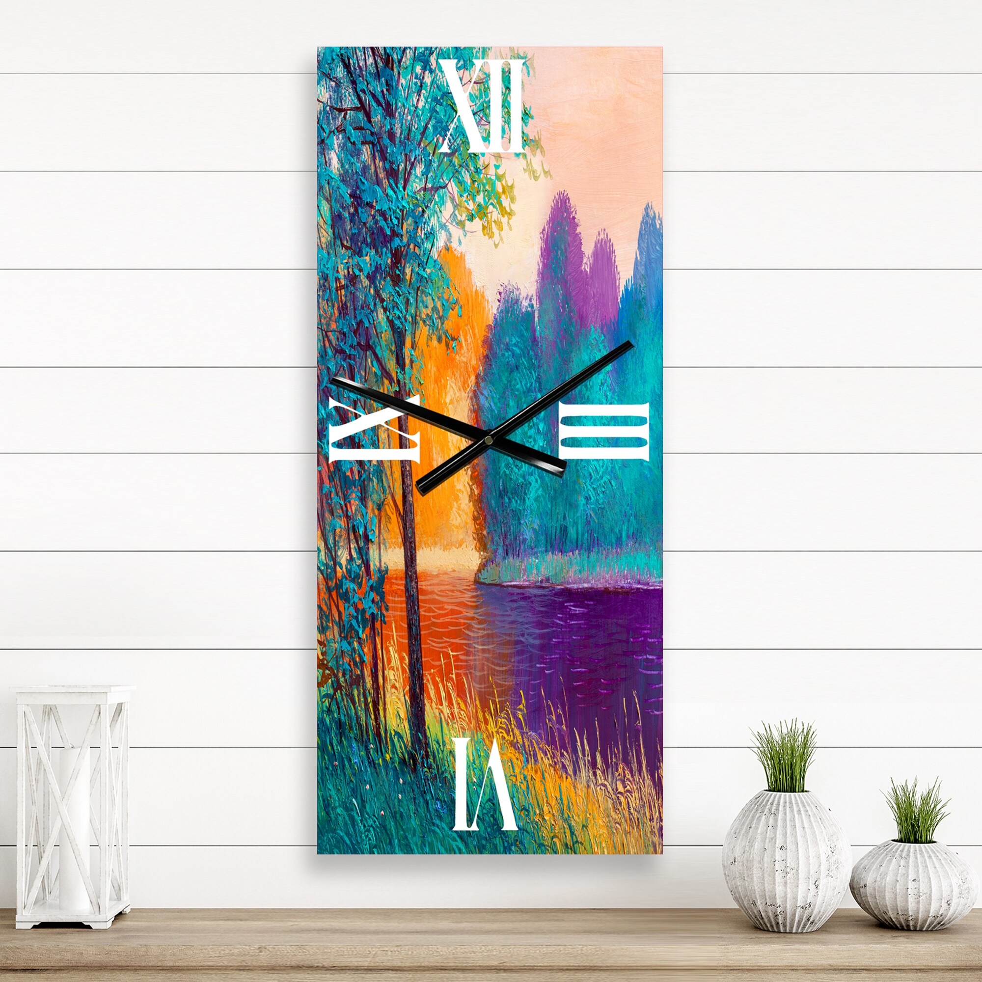 Designart 'Colorful River Between the Trees During Twilight' Traditional Metal Wall Clock