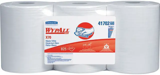 WypAll X70 Extended Use Reusable Cloths (41702), Center Pull Roll, Long Lasting Performance, White, 3 Rolls, 275 Sheets / Roll