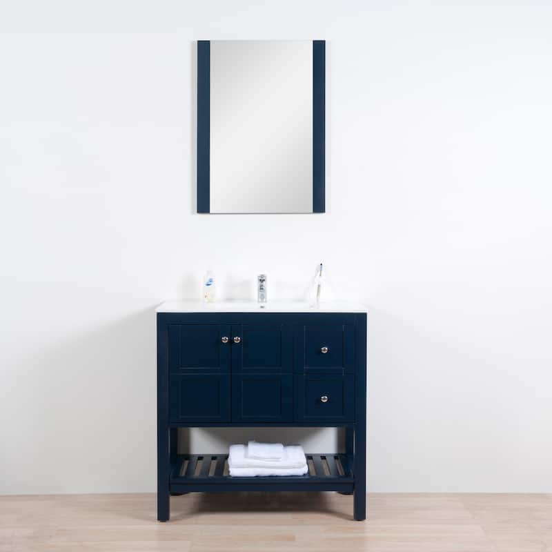 Manhattan 36" Freestanding Vanity with Ceramic Top in Navy