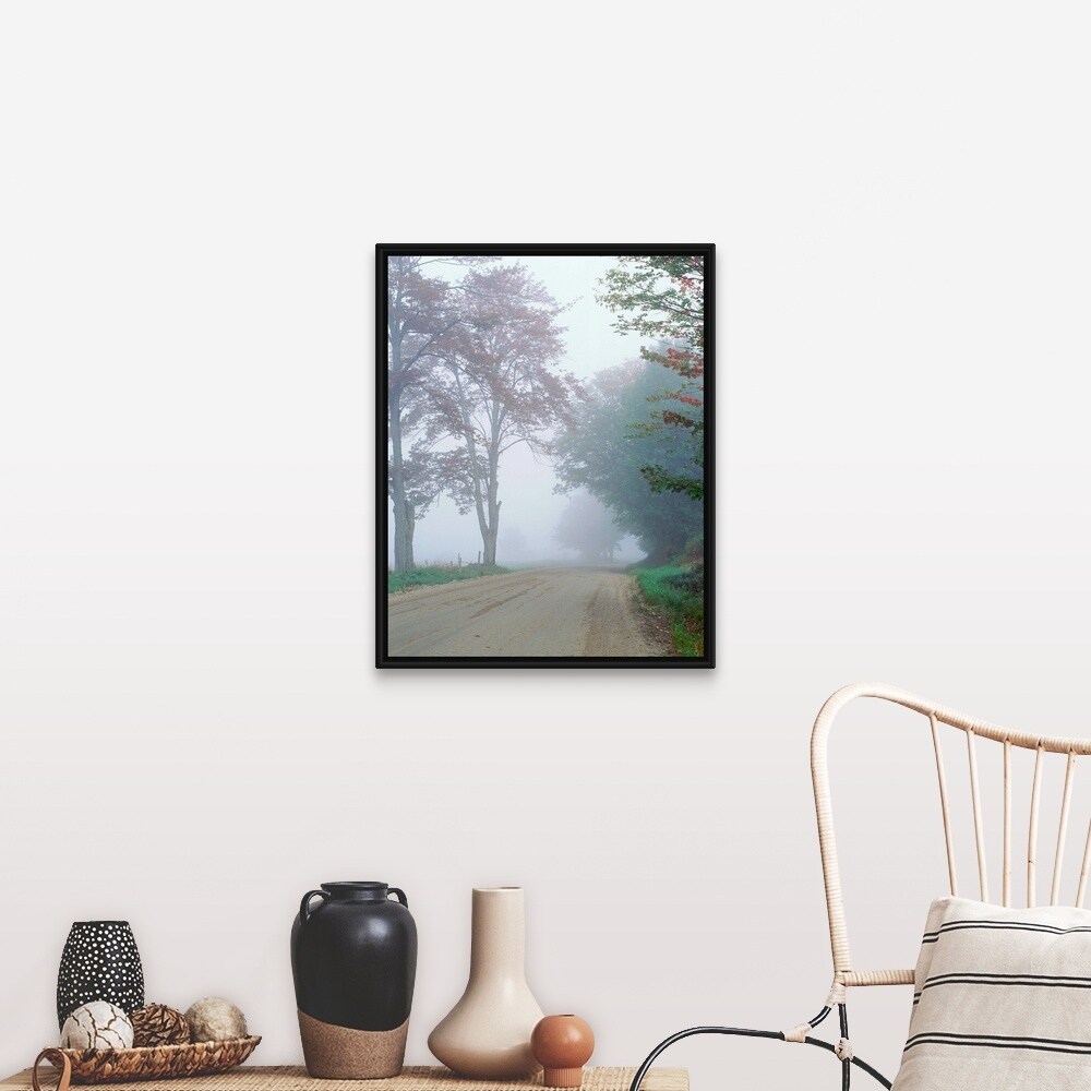 "Vermont, Morristown, Tree along the road" Black Float Frame Canvas Art