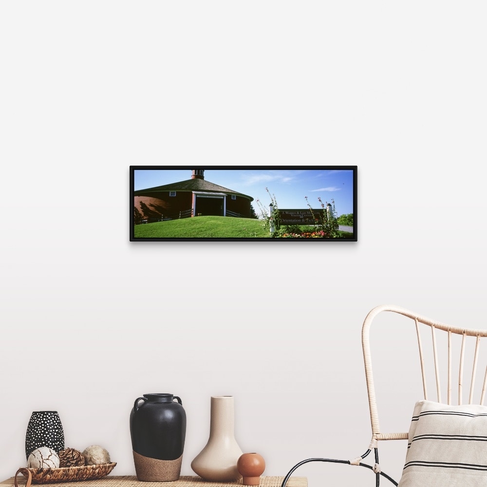 "Information board in front of a museum, Shelburne Museum, Shelburne, Vermont" Black Float Frame Canvas Art