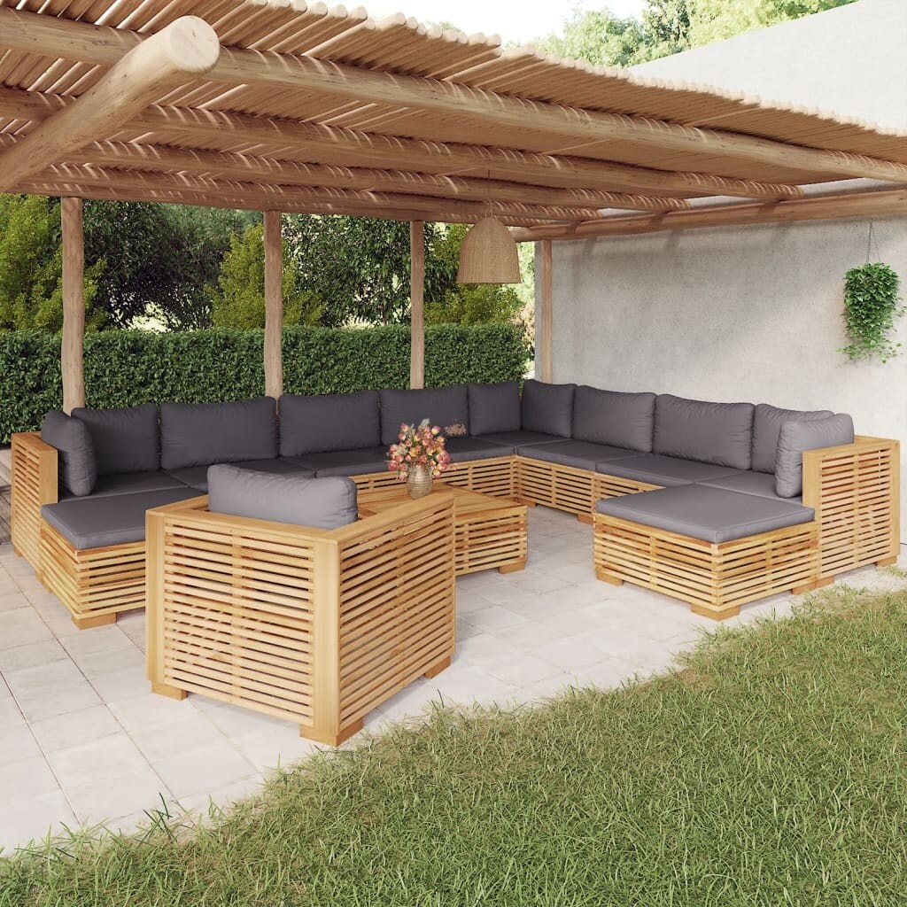 vidaXL 3 Piece Patio Lounge Set with Cushions Solid Wood Teak - 27.4" x 27.4" x 23.6"
