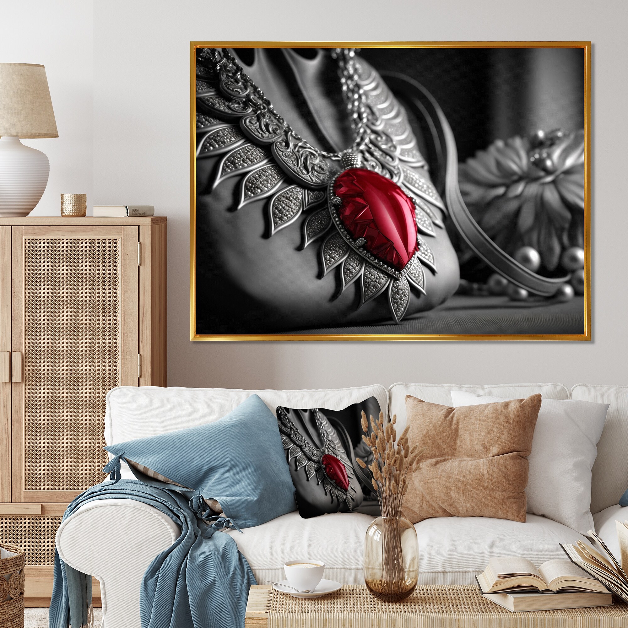 Designart "Vintage Glam Accessories in Red and Black VII" Fashion Framed Canvas Wall Art Print