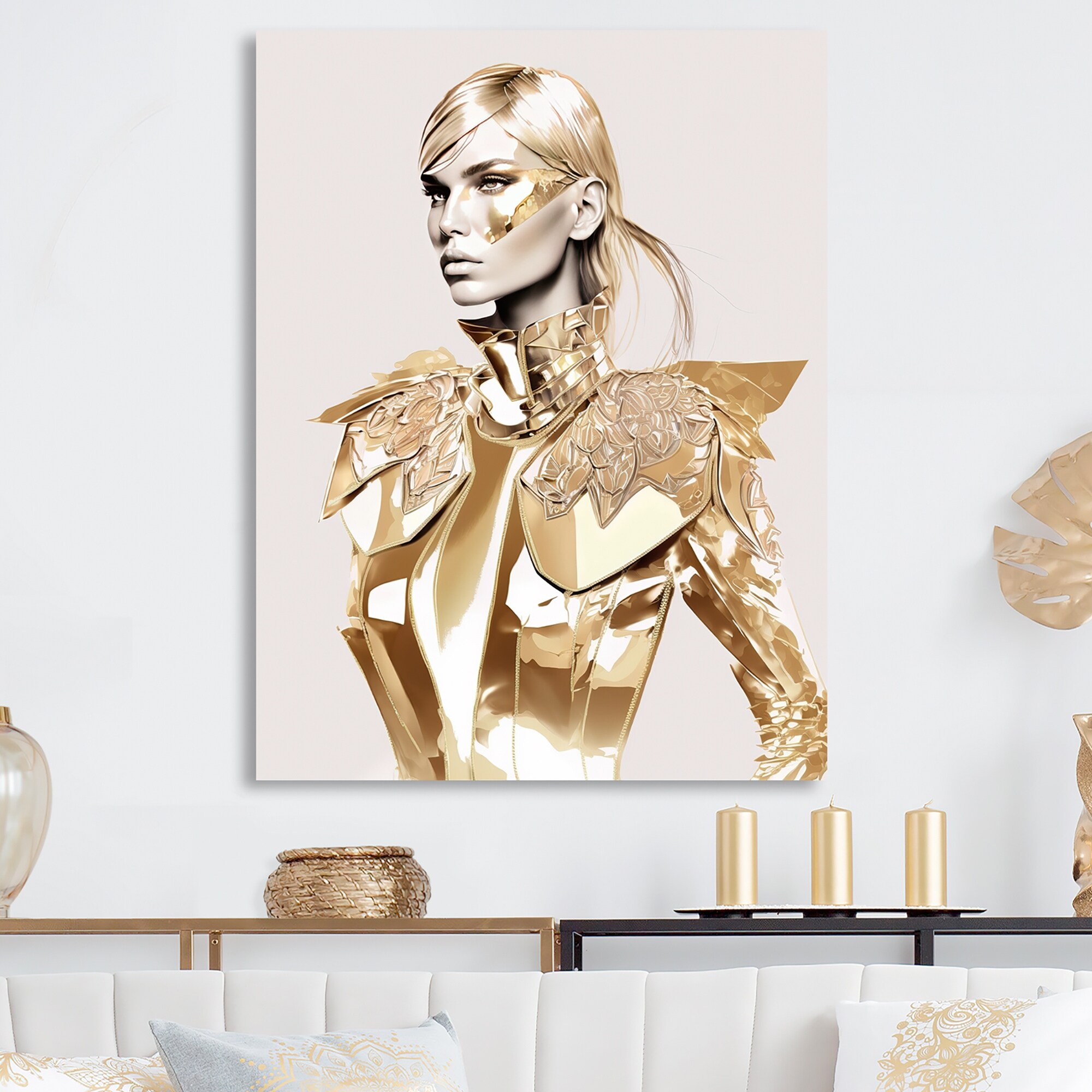 Designart "Fashion Model in Retro Gold Design VII" Fashion Woman Metal Wall Art