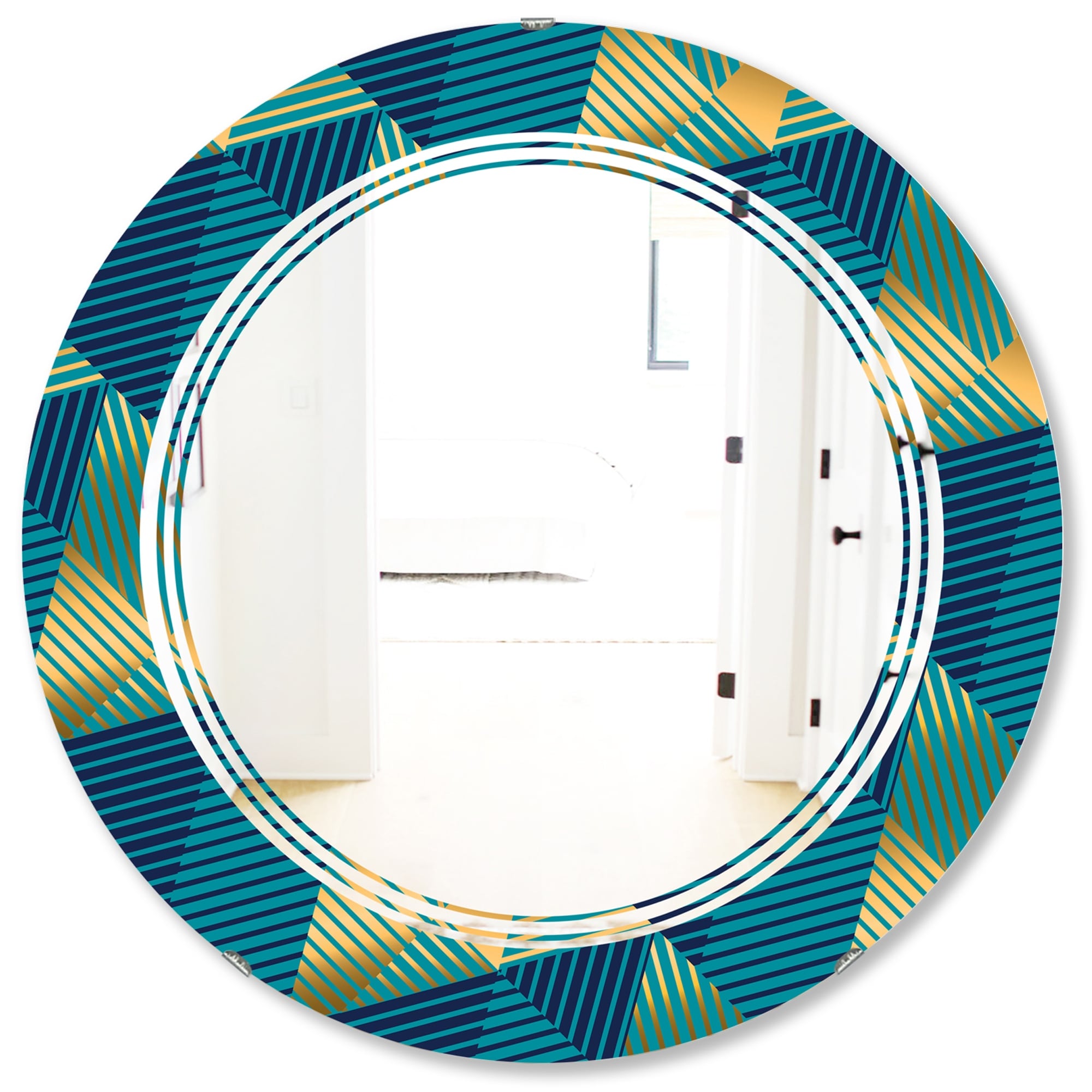 Designart 'Retro Luxury Waves in Gold and Blue VII' Printed Modern Round or Oval Wall Mirror - Triple C