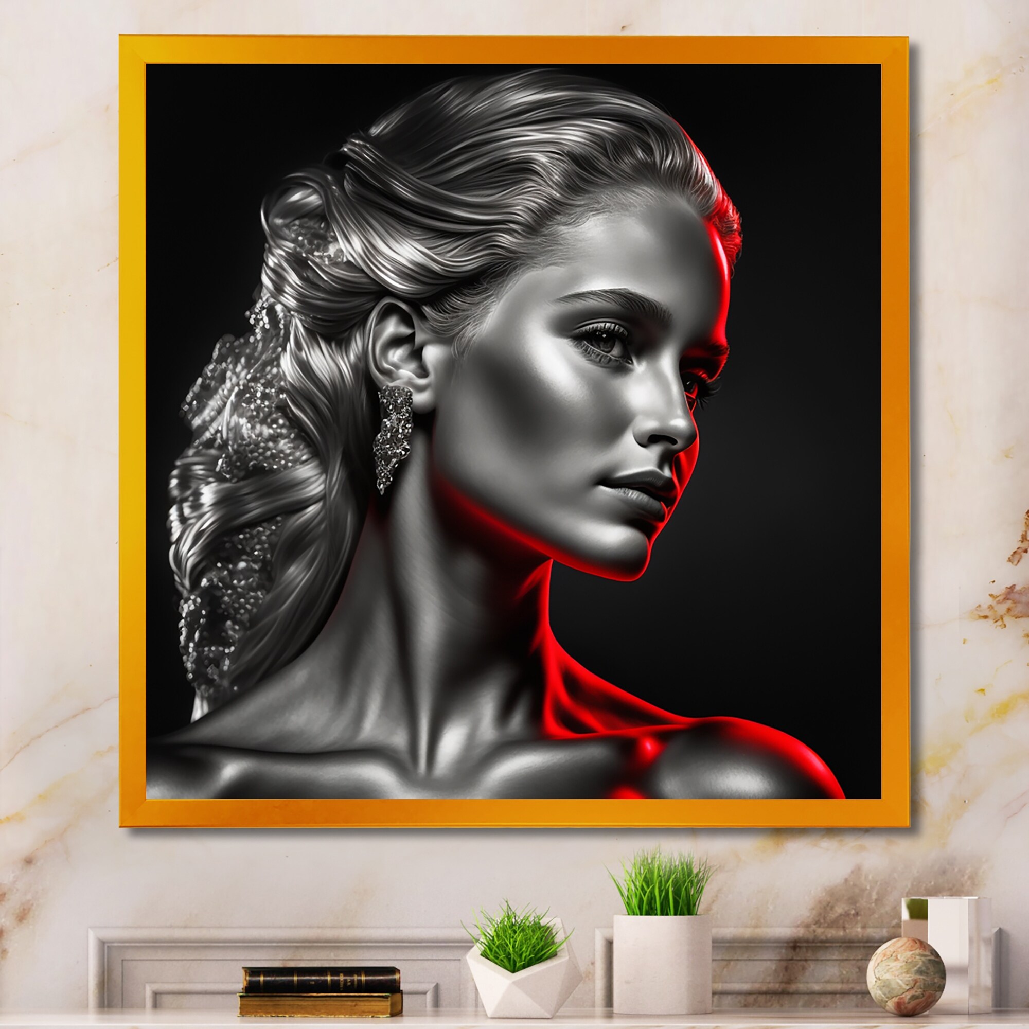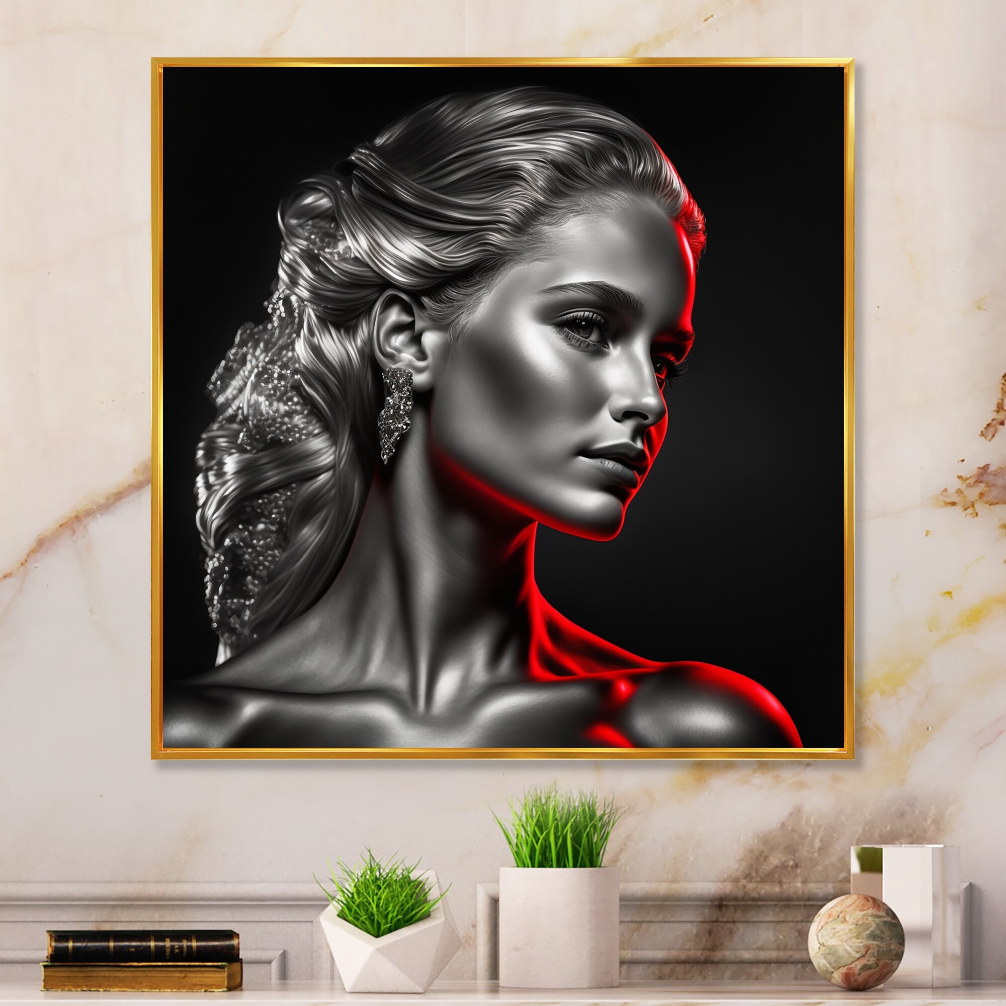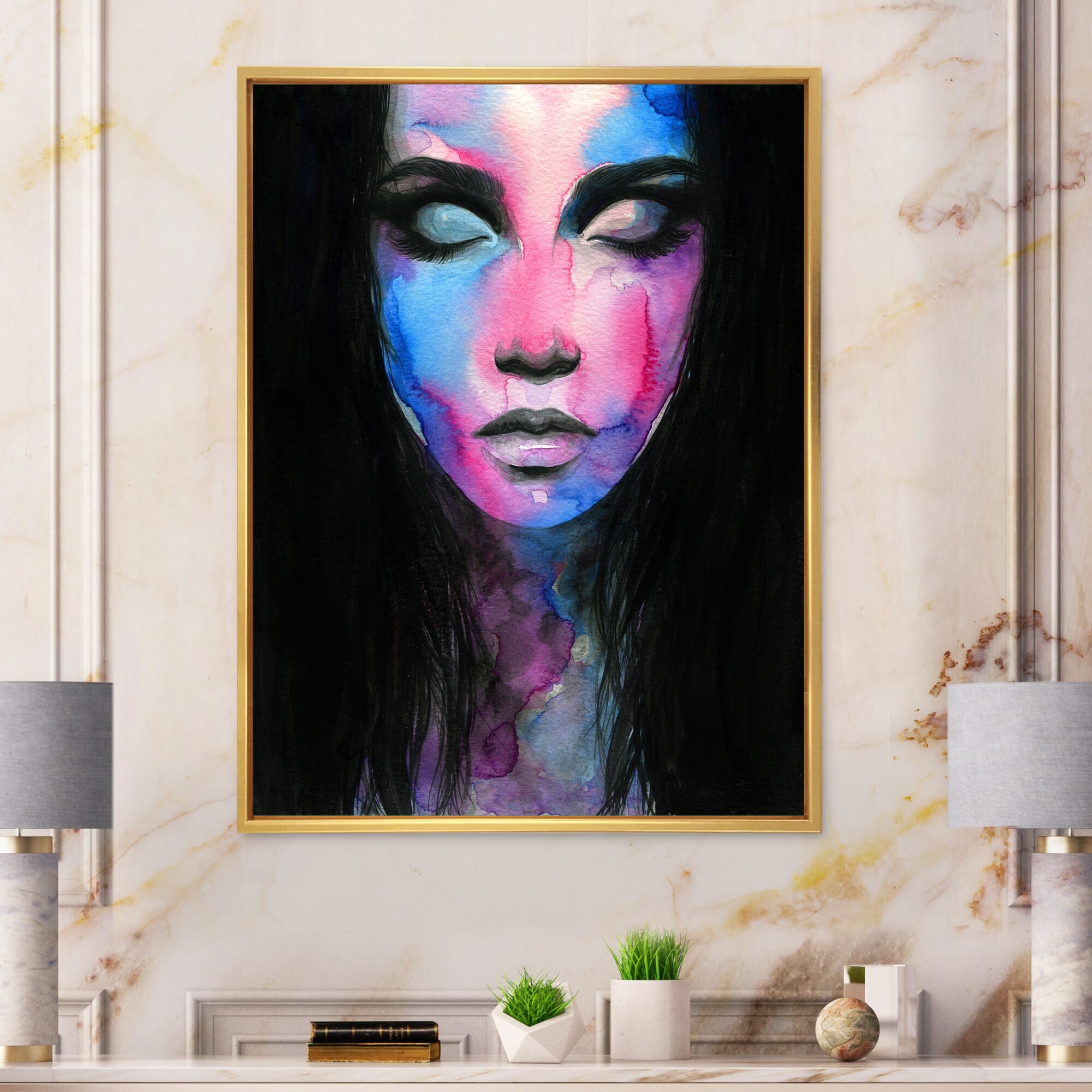 Designart "Fashion Model With Vivid Make Up VII" Glam Framed Canvas Wall Decor