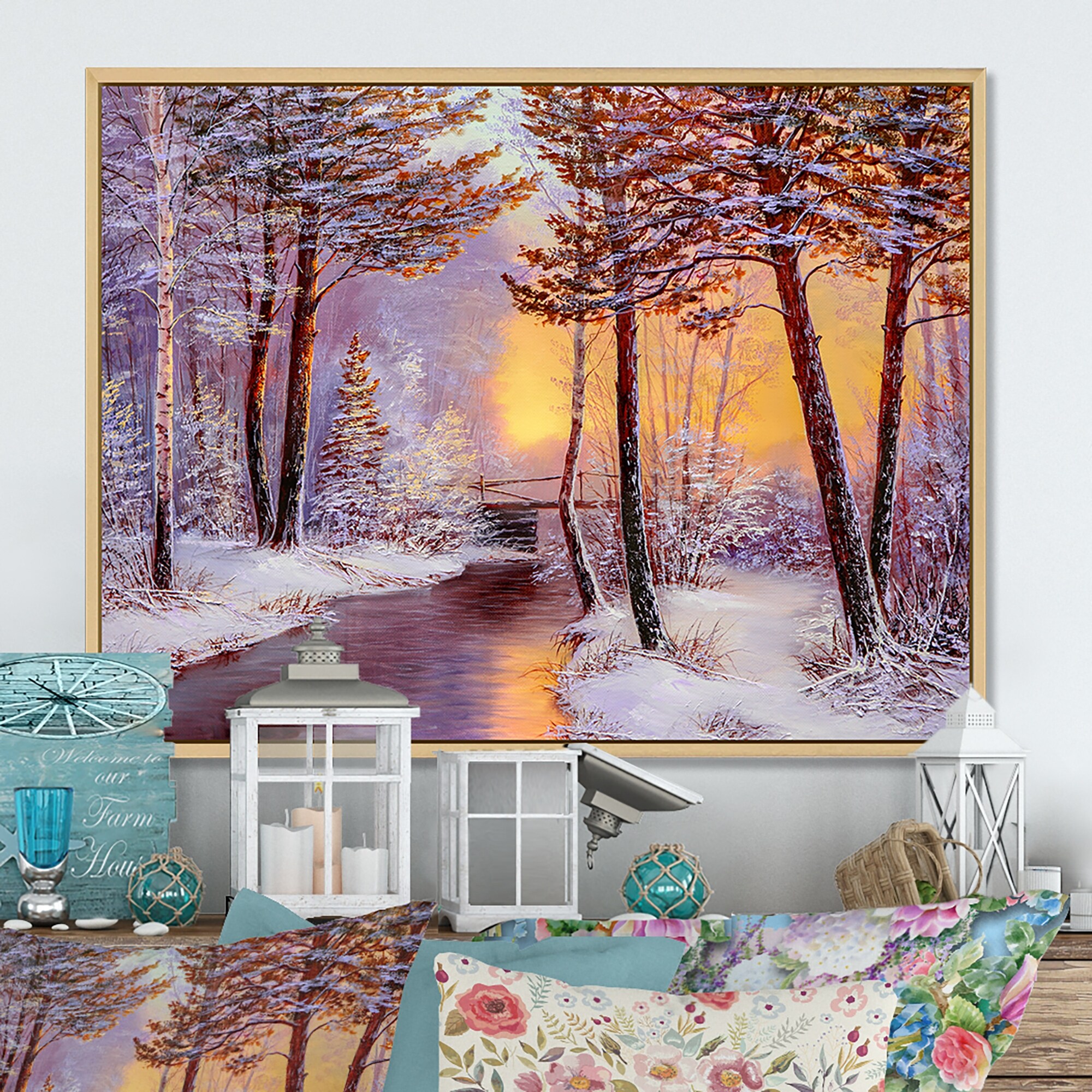 Designart "Sunshine Through Snowy Winter Landscape Vii" Traditional Framed Canvas artwork