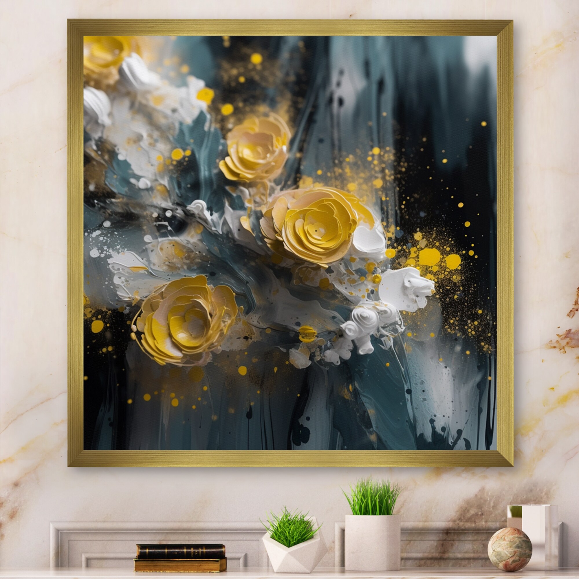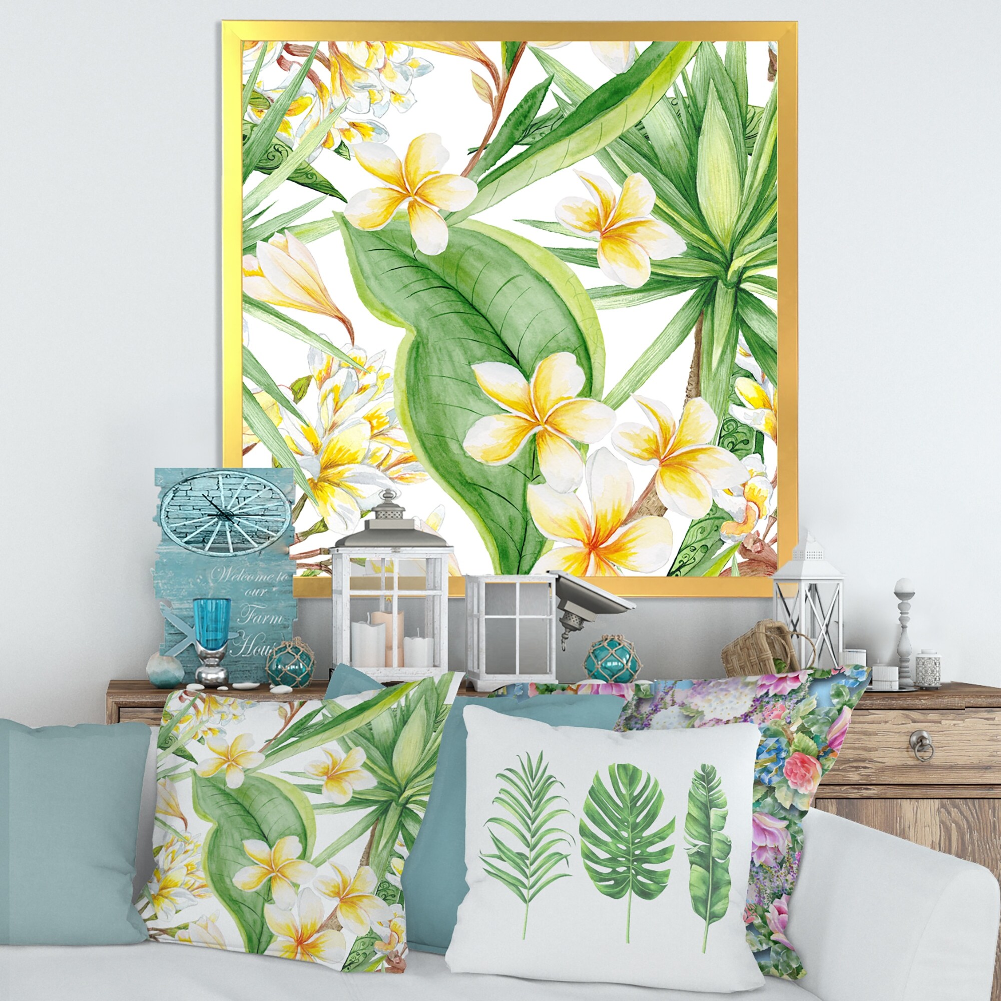Designart "Tropical Foliage and Yellow Flowers VII" Modern Framed Art Print