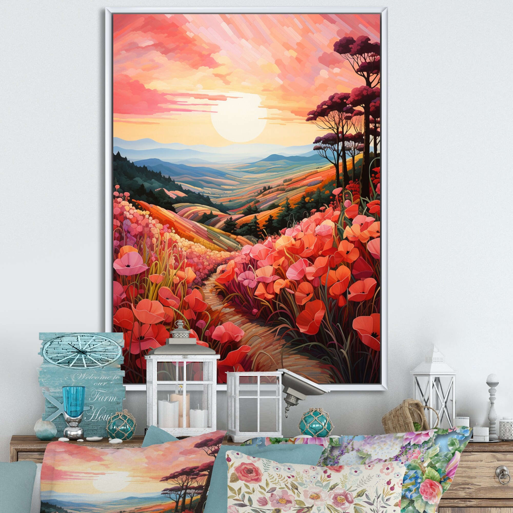 Designart "Countryside Red Poppy Field VII" Countryside Framed Wall Art Living Room