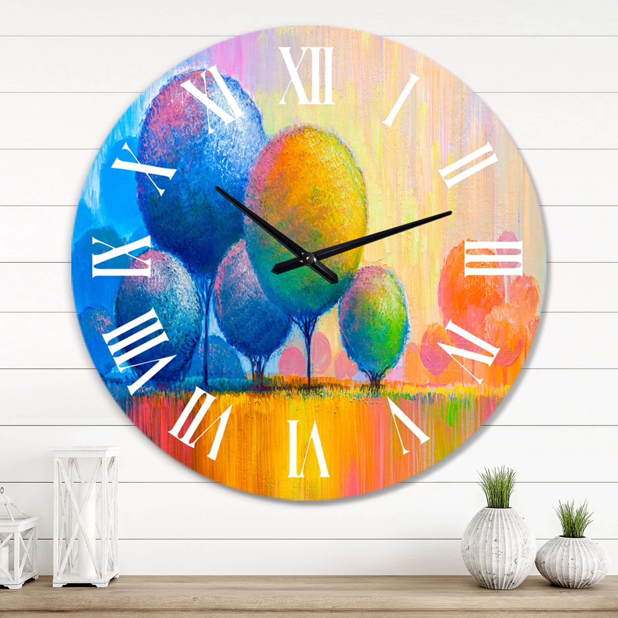 Designart 'Colourful Ornamental Trees VII' Modern wall clock