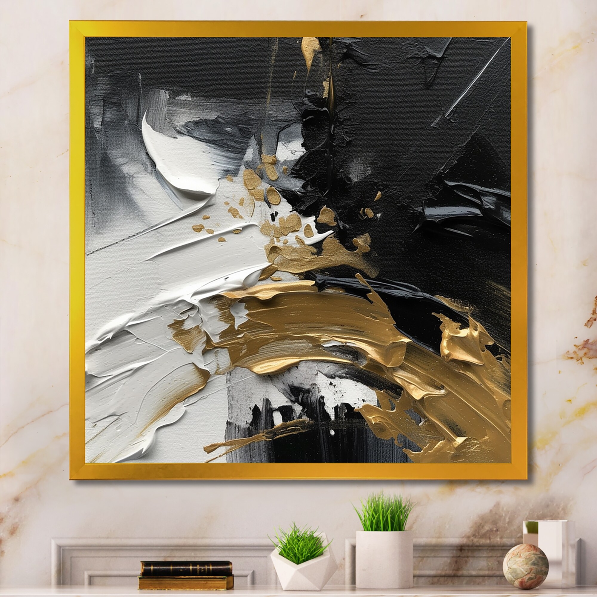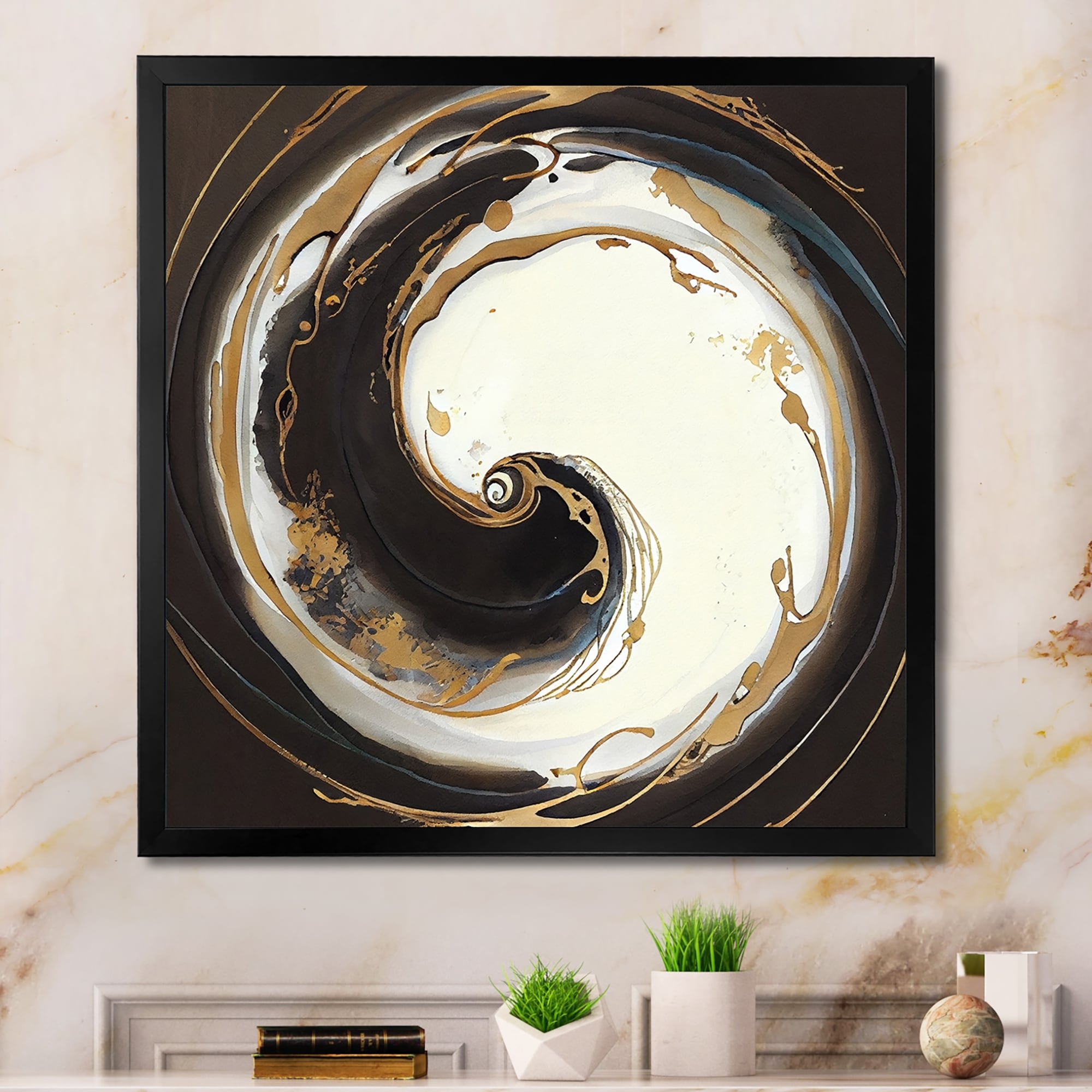 Designart "Black And Gold Circle VII" Modern Framed Art Print