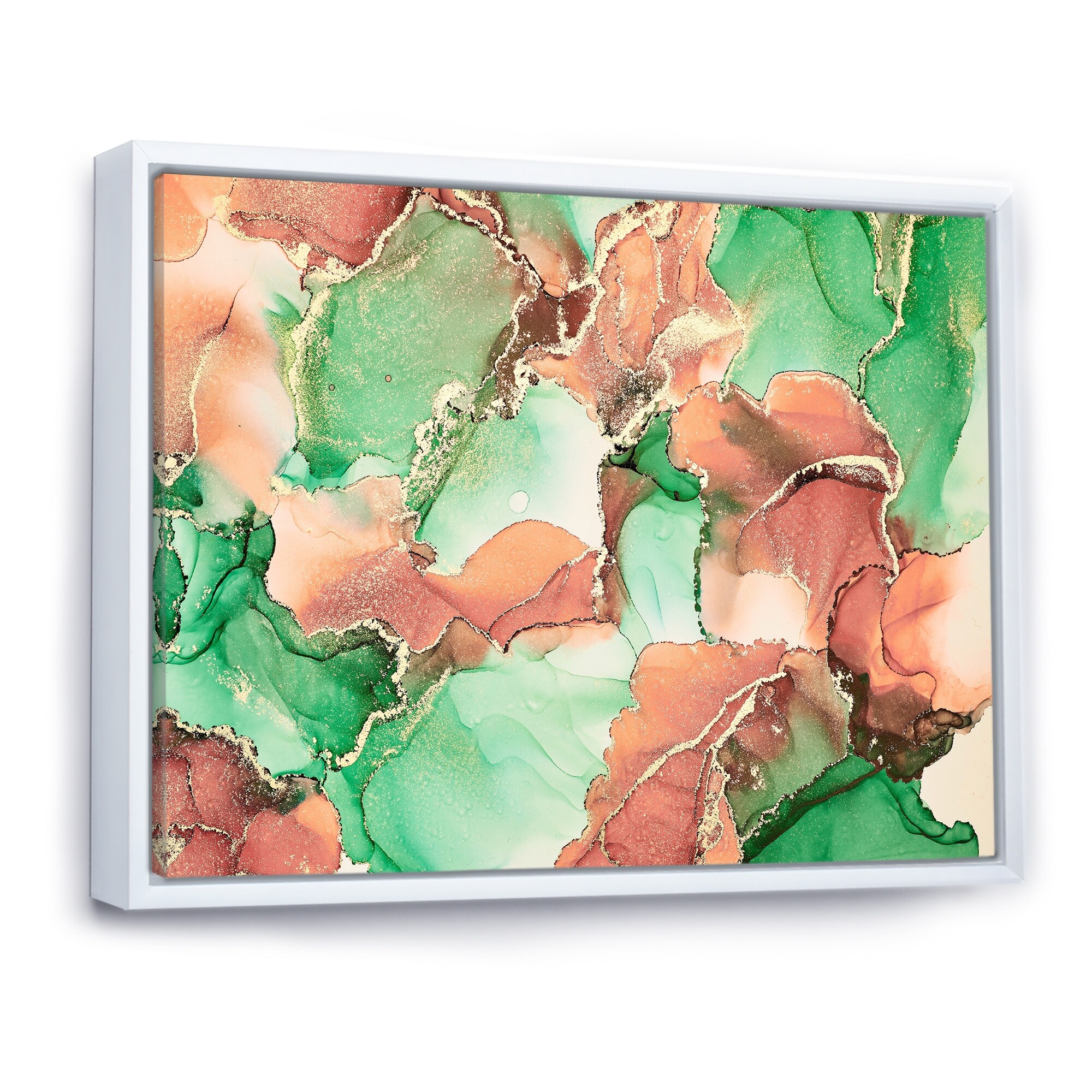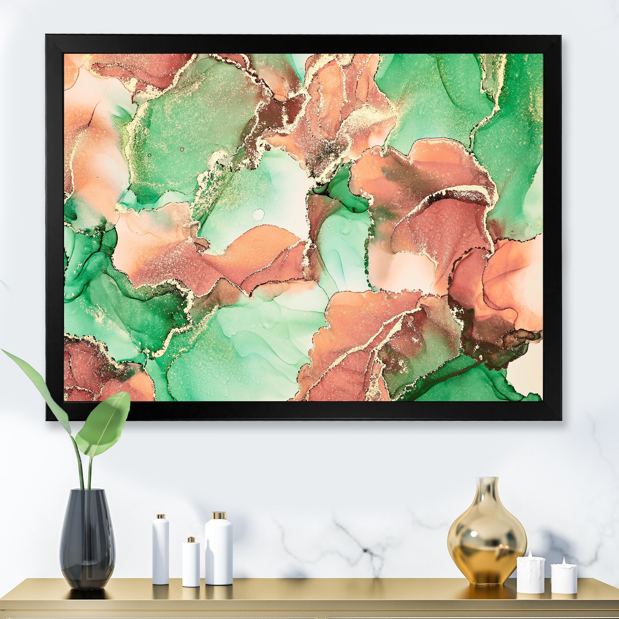 Designart "Green Luxury Abstract Fluid Art VII" Modern Framed Canvas Wall Art Print