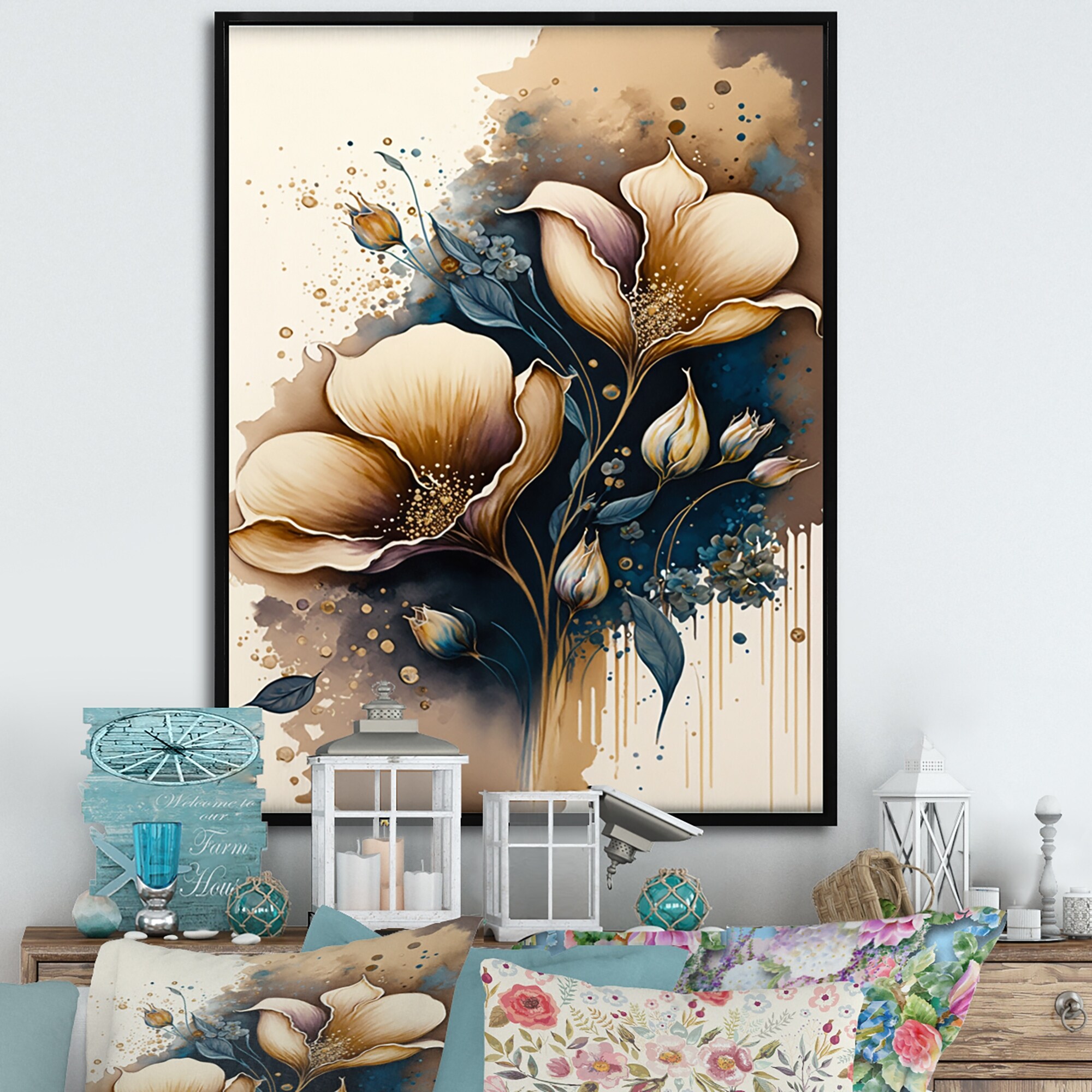 Designart "Deep Blue Calla Lily Bouquet VII" Floral & Botanical Framed Canvas Art Print