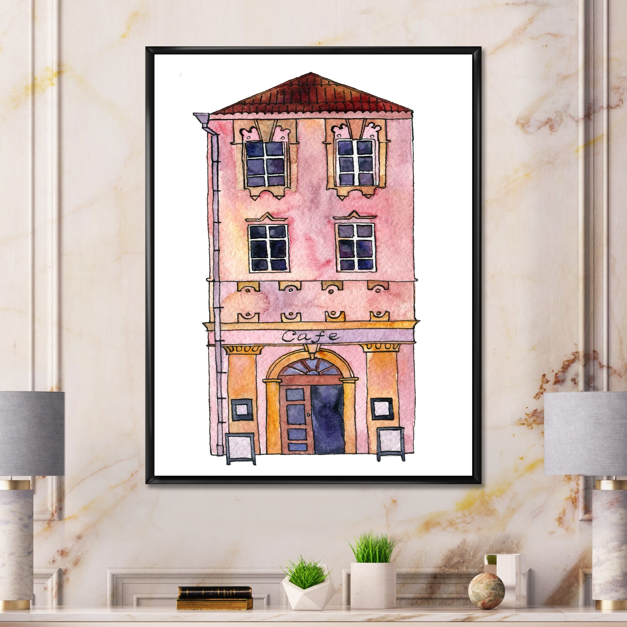 Designart "Sketch Of Old Europe Street VII" Bohemian & Eclectic Framed Canvas Wall Art Print