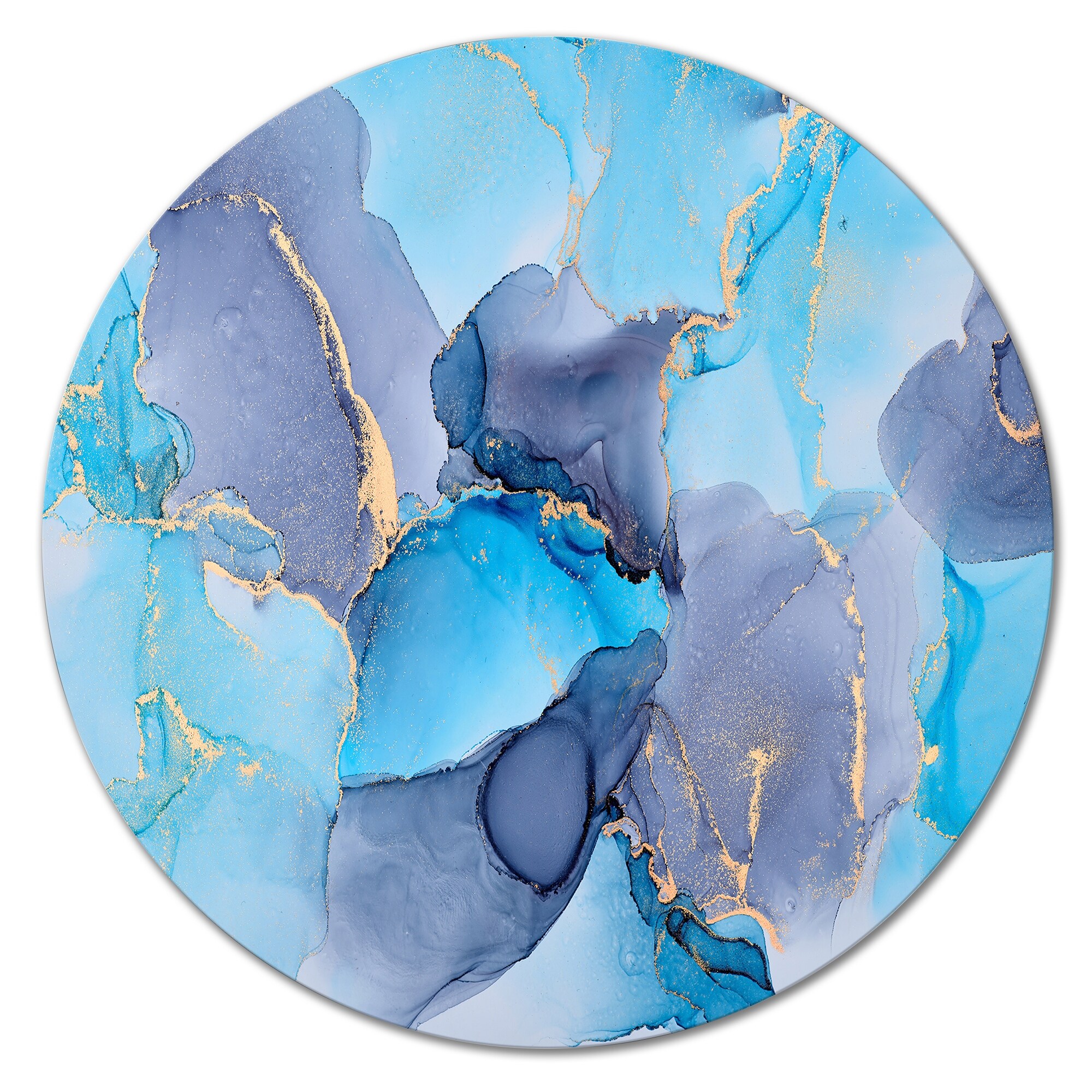Designart 'Turquoise And Purple Luxury Abstract Fluid Art VII' Modern Metal Circle Wall Art