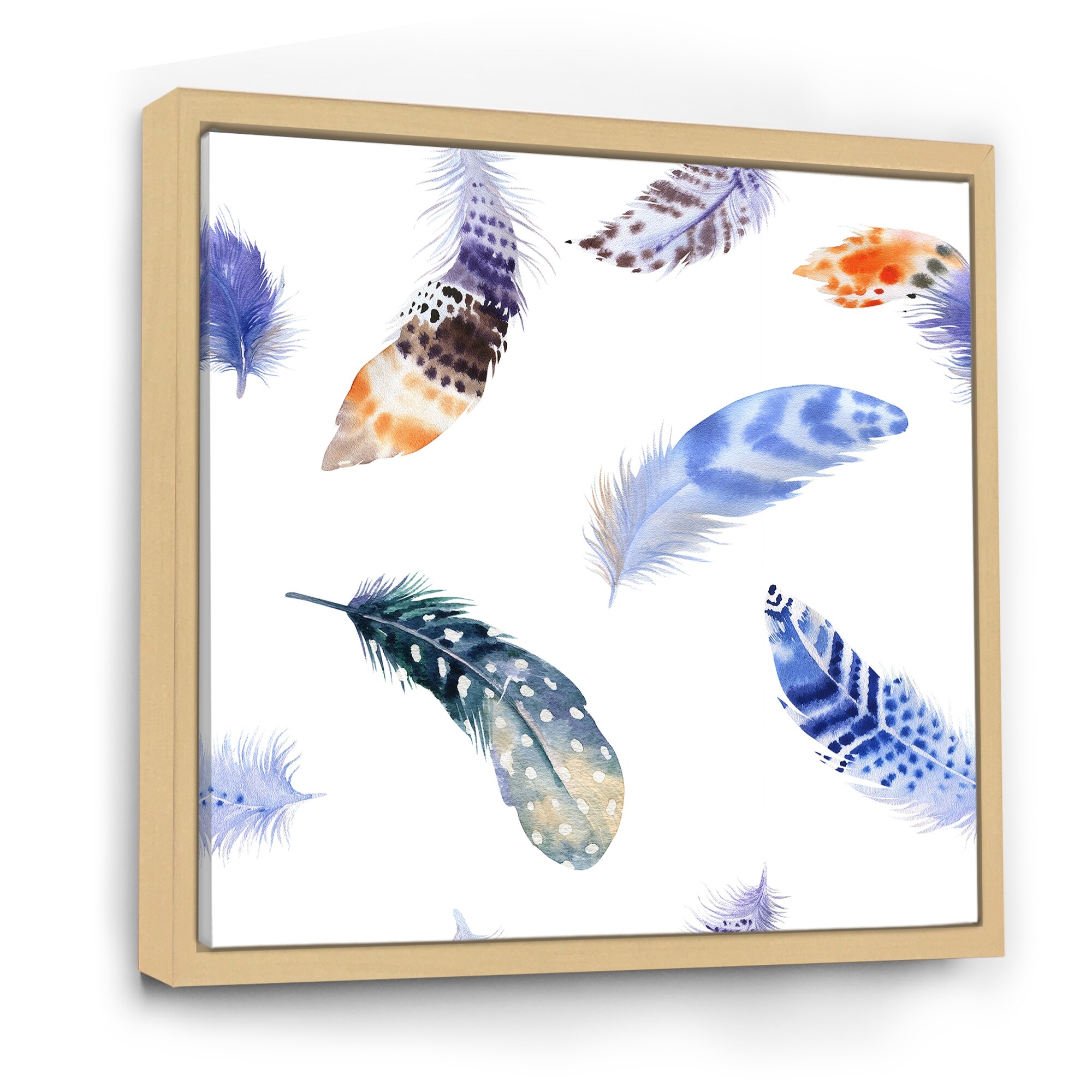 Designart "Colourful Boho Feather Set VII" Bohemian & Eclectic Framed Canvas Wall Art Print