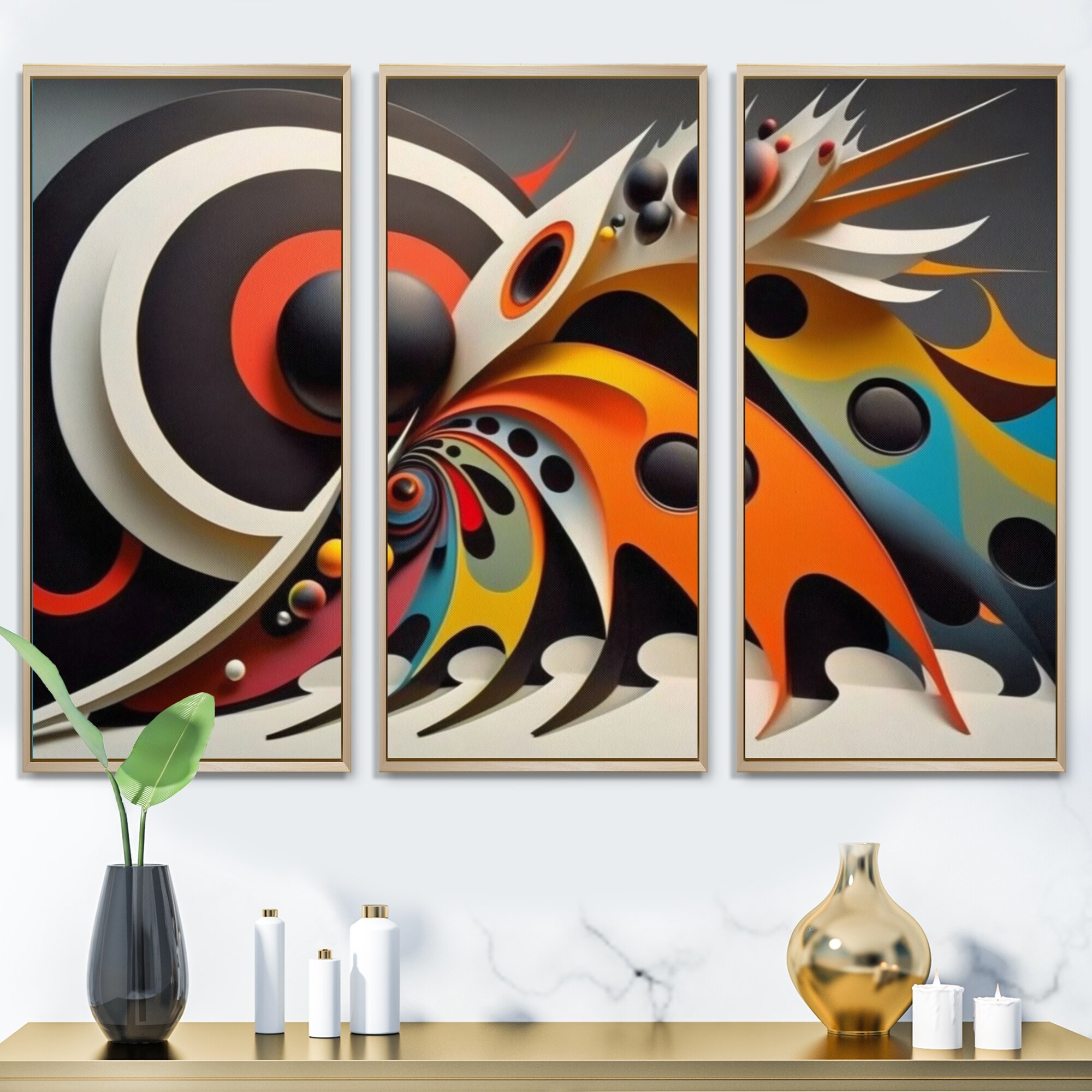Designart "Minimalist Colorful Spheres And Waves VII" Modern Geometric Framed Canvas Wall Art Print - 3 Panels