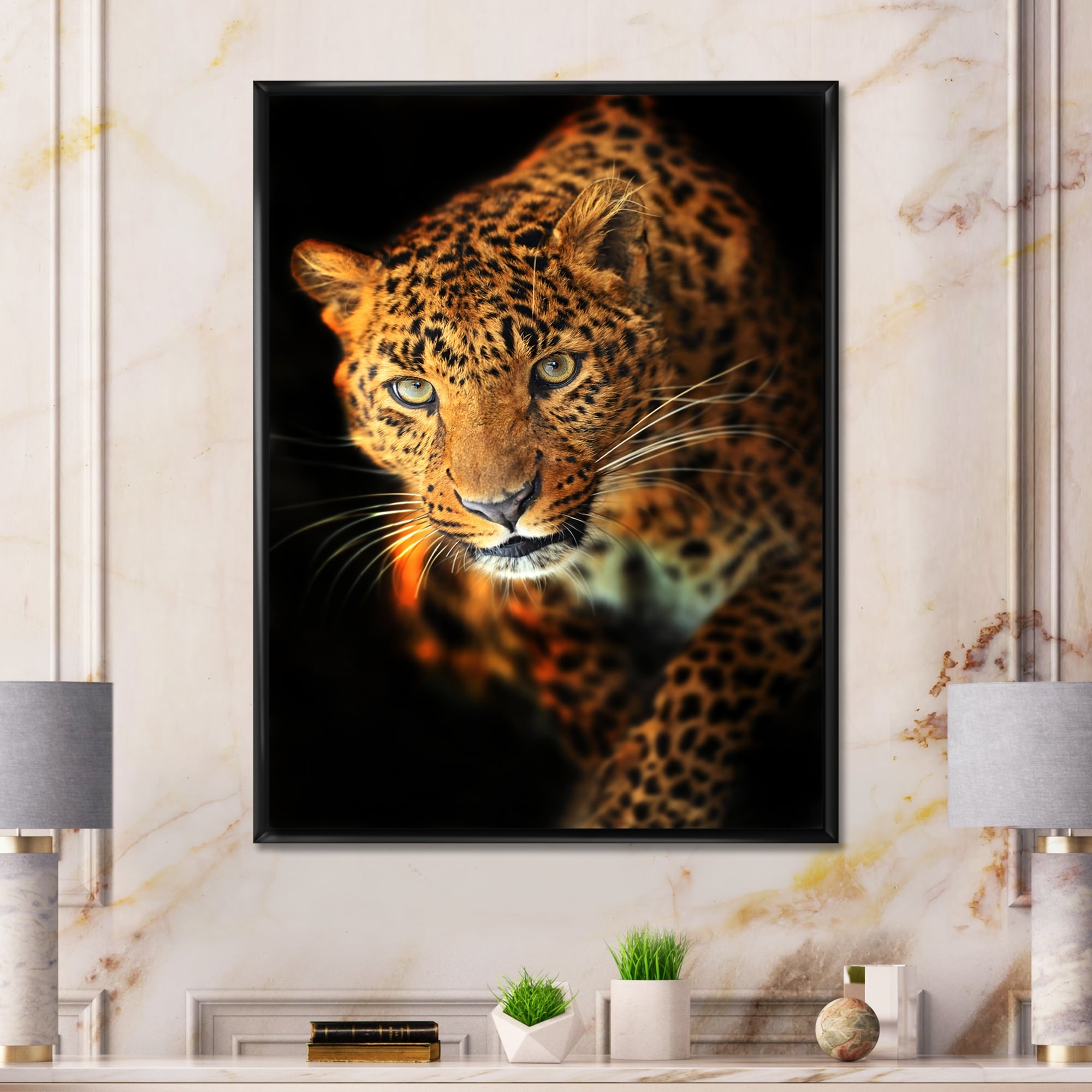 Designart "Portrait Of a Leopard VII" Traditional Framed Canvas Wall Art Print