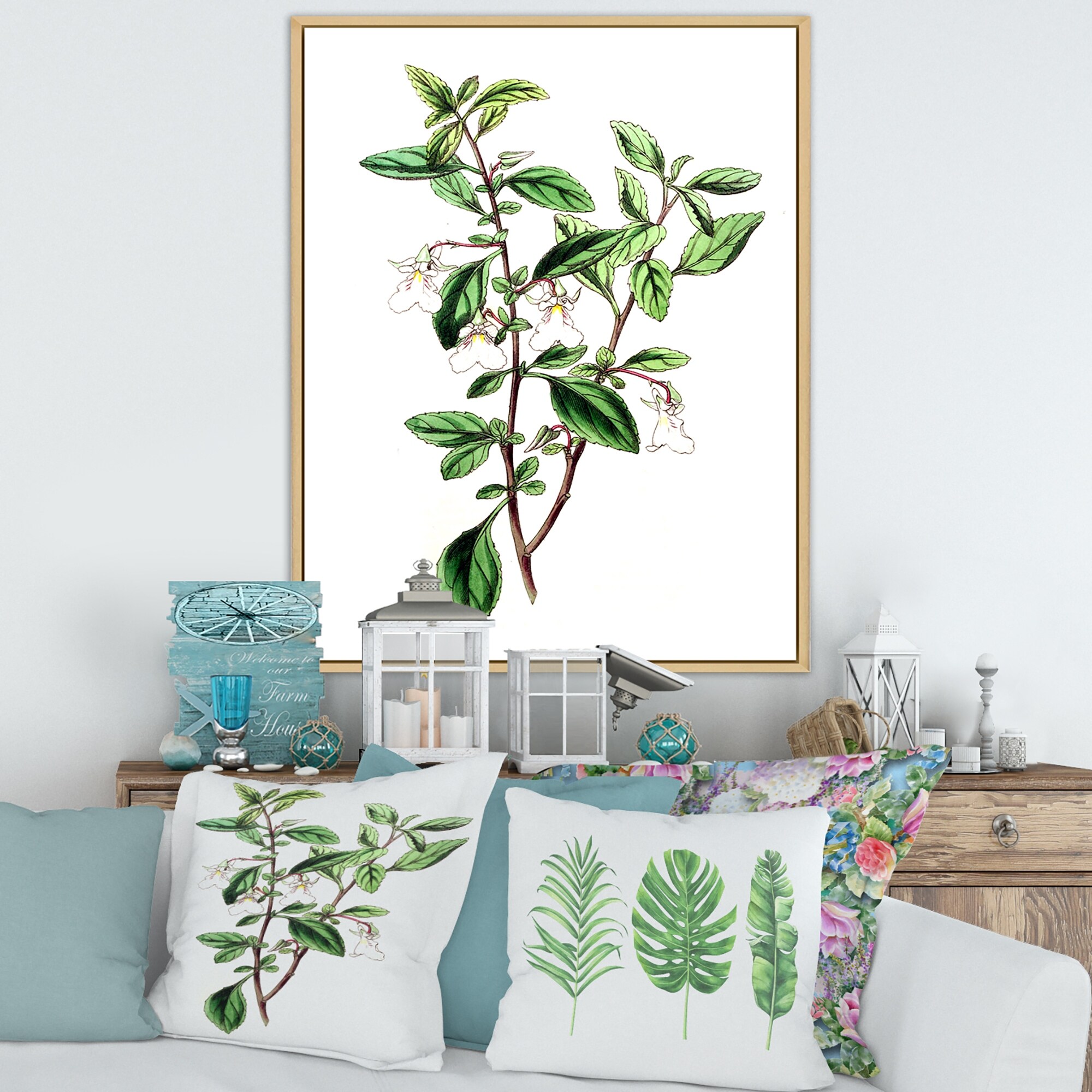 Designart "Vintage Green Leaves Plants VII" Traditional Framed Canvas Wall Art Print