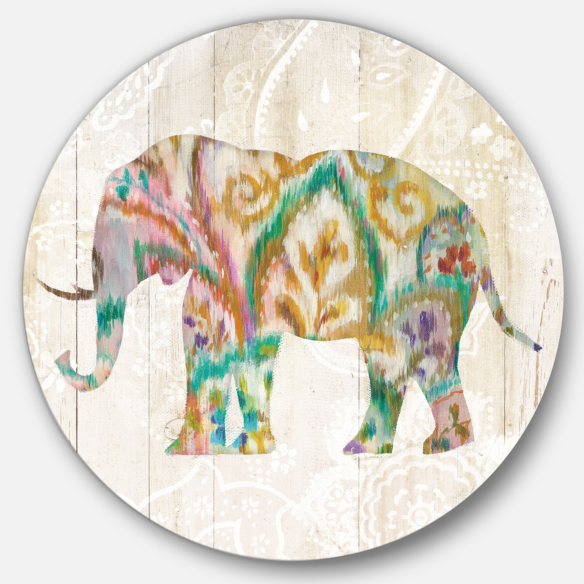 Designart 'Boho Paisley Elephant II vII' Traditional Metal Circle Wall Art
