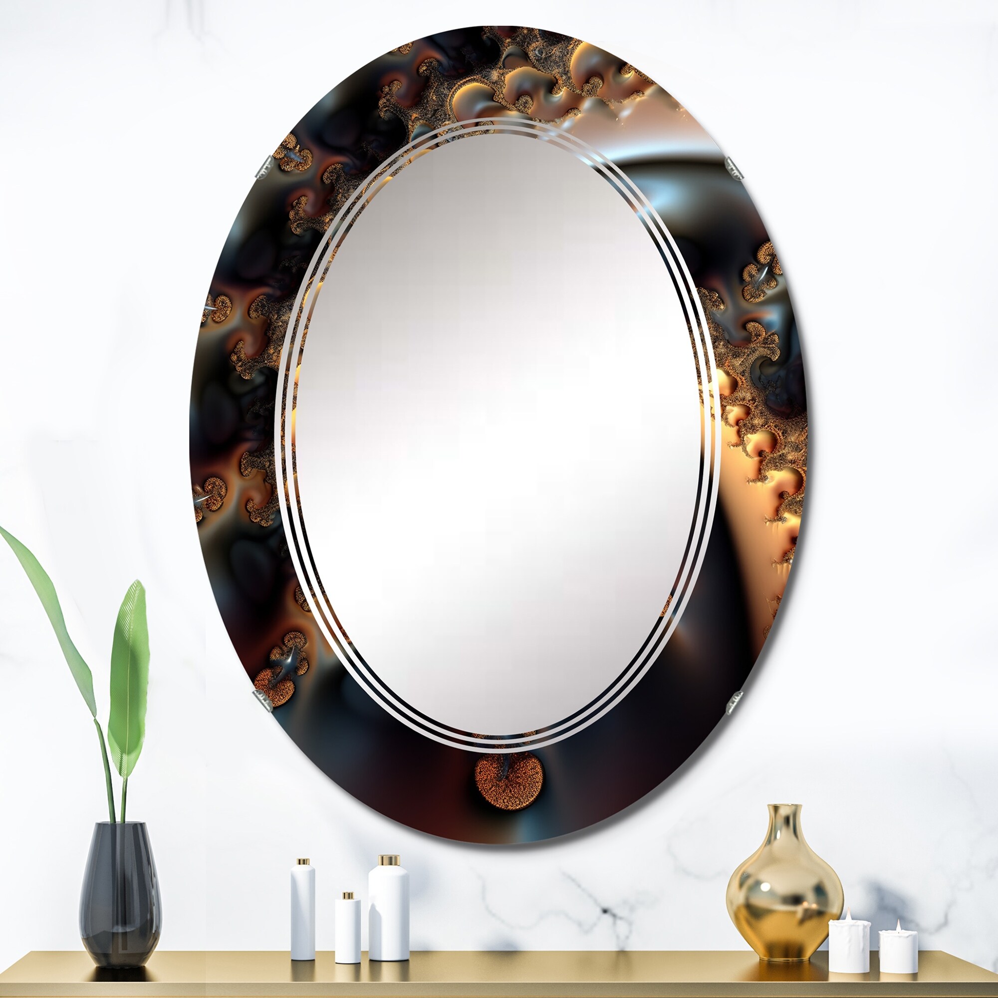 Designart 'Golden Fractal Bliss VII' Printed Modern Geometric Wall Mirror