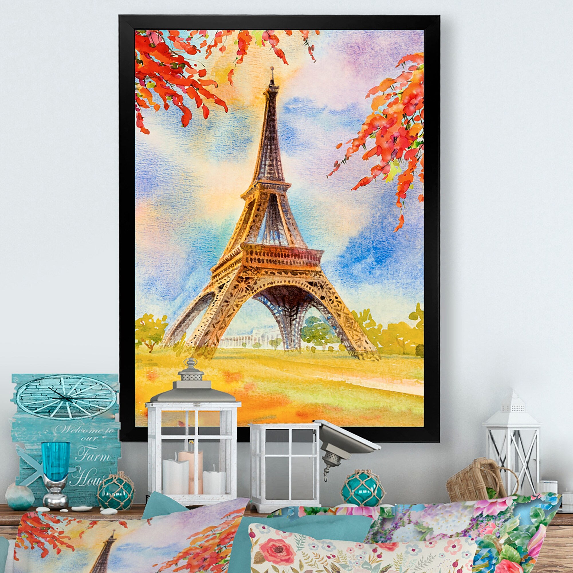 Designart "Paris Eiffel Tower in Beaufitul Summer VII" French Country Framed Wall Decor