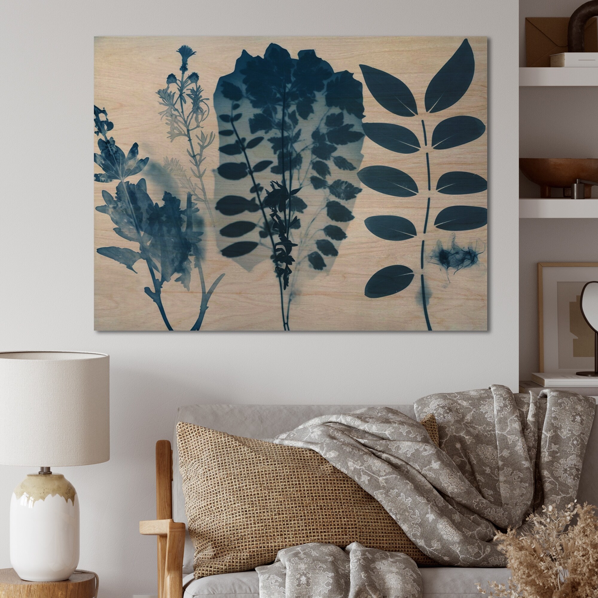 Designart 'Retro Wildflowers in Shades of Blue VII' Floral Wood Wall Art - Natural Pine Wood