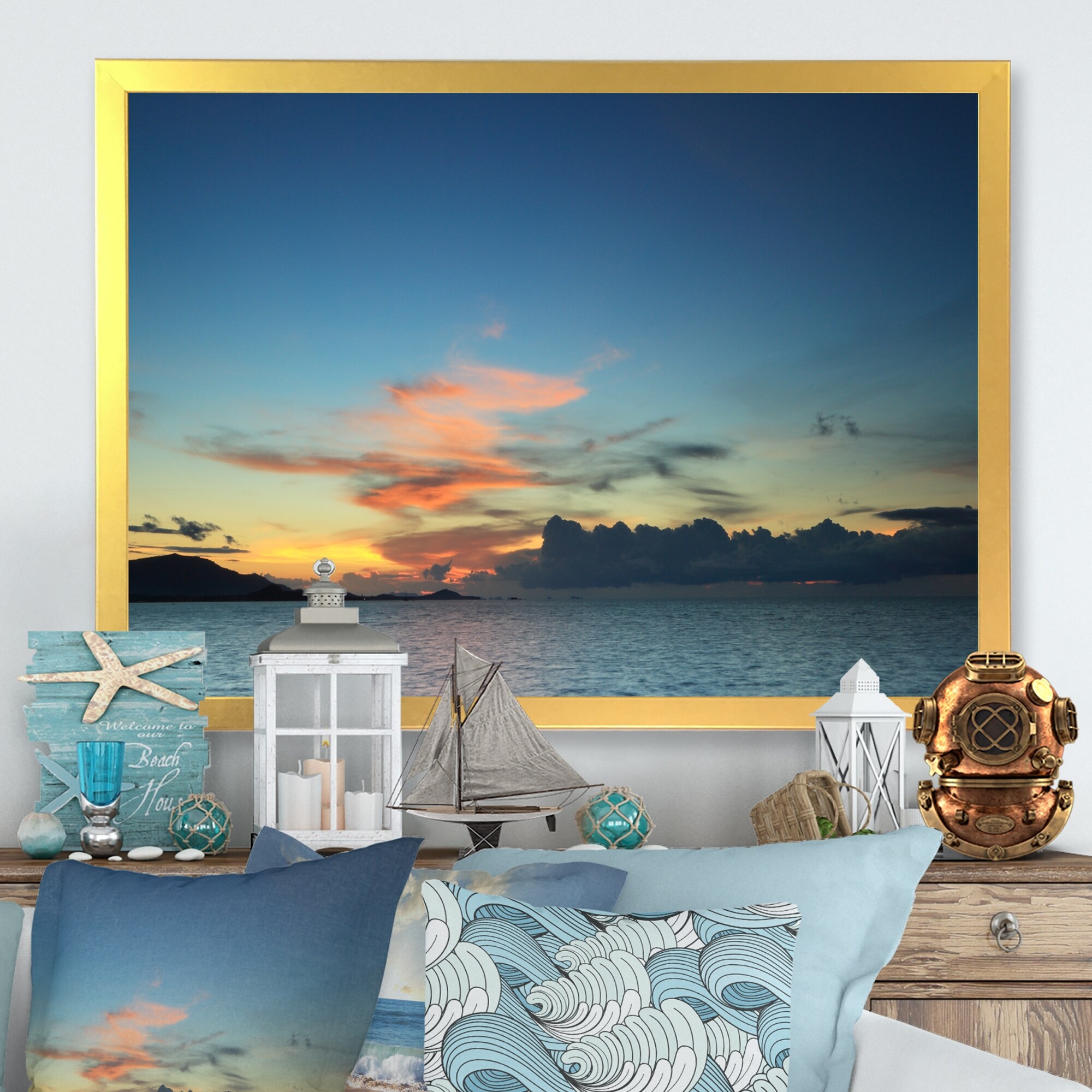 Designart "Panoramic Cloud And Sky At Sunset" Nautical & Coastal Framed Wall Art